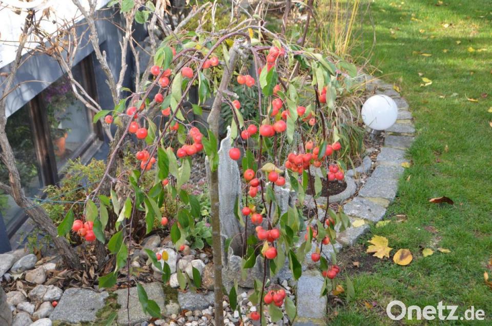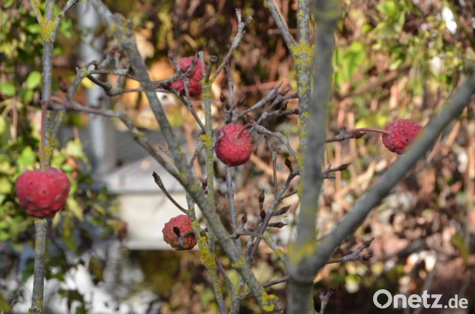 Noch etliche der pflanzlichen Gartenbewohner warten darauf, dass sie rechtzeitig für die nun beginnende kalte Jahreszeit vorbereitet werden. Empfindliche Pflanzen erhalten schützende Hüllen, die Blumenknollen bereits ein sicheres Winterquartier, auch die Hecke wurde ihrem letzten Schnitt unterzogen und die Rosen werden noch angehäufelt. Der wunderschöne Seerosenteich verlangt auch noch nach Betreuung und die Rosen müssen noch zurückgeschnitten werden, berichtete Christa Gieler, wohl wissend, dass noch längst nicht alle Arbeit getan ist. Aber es ist nicht nur das Vergehen, es ist auch das Werden. Im späten Herbst pflanzte die Gärtnerin noch schnell Beerengehölze auf Hochstamm. „Da ist die Ernte einfach bequemer und rückenschonender.“ Der Frühling liegt also bereits in der nebligen Herbstluft. Außerdem hängen heuer die ersten dekorativen Früchte am Chinesischen Blumen-Hartriegel „Teutonia“. Die im Durchmesser bis zu zwei Zentimeter großen erdbeerähnlichen Früchte lassen sich ebenfalls zu Marmeladen verarbeiten. Wenn nicht, sind sie auch eine begehrte Futterquelle für die Vögel im Winter. Noch einmal haben die letzten Blumen ihren ganz großen Auftritt, bis dann eine Schneedecke für ein klein wenig Ruhe sorgt.
