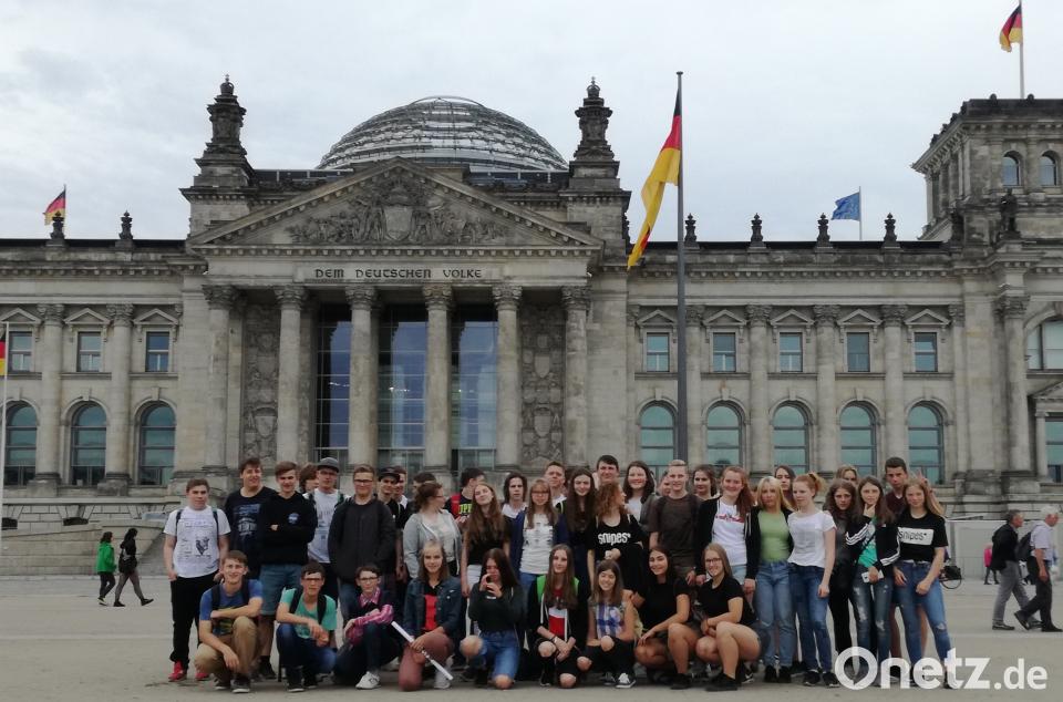 Für die 9. Klassen war die Bundeshauptstadt Berlin das Ziel nach den Prüfungen. Mit ihren Klassenlehrern Tamara Strobl, Burga Kiesbauer, Evelyn Gleixner und Michael Obendorfer verbrachten die Absolventen interessante und aufregende Tage in der Hauptstadt. Mit dem Bus besuchte die Gruppe den früheren Grenzübergang Checkpoint Charly. Von dort erkundeten die Teilnehmer dann zu Fuß die Ausstellung „Topografie des Grauens“ und später den Potsdamer Platz. Am nächsten Tag fuhr die Gruppe schon früh zum Stasigefängnis Hohenschönhausen, das eher bedrückende Eindrücke hinterließ. Danach war Zeit zum Shoppen am Kurfürstendamm. Am Nachmittag vergnügten sich die jungen Leute im Wachsfigurenkabinett von Madame Tussauds und ließen sich mit ihren Lieblingsstars ablichten. Zur Erholung gönnte sich die Gruppe eine Fahrt auf der Spree durchs Regierungsviertel. Der Besuch der Kuppel war leider wegen der zu dieser Zeit stattfindenden Sicherheitskonferenz nicht möglich.