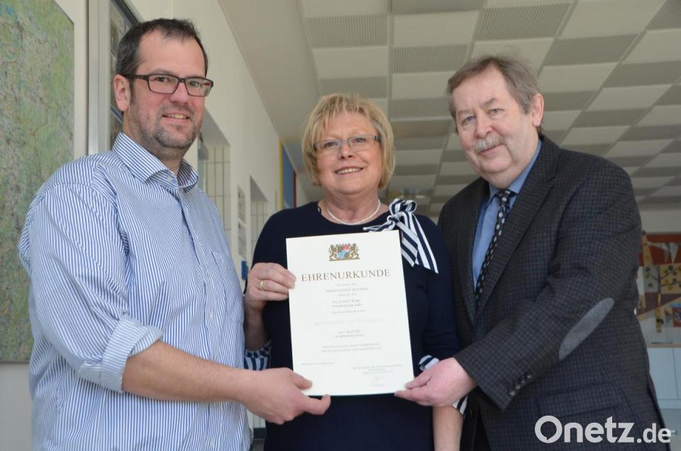 Die Ehre und Anerkennung gebühre der Sekretärin für die Vollendung einer Dienstzeit von 25 Jahren. Karl war von 1994 bis 1999 im Sekretariatsdienst an der Bayerischen Staatsforstverwaltung in Vohenstrauß beschäftigt und wechselte dann nach deren Auflösung zum Beginn des Schuljahrs 1999/2000 an die Realschule. Für Meier ist Karl „eine überaus engagierte, umsichtige und kompetente Sekretärin, die einerseits alle Aufgaben in der Verwaltung perfekt beherrscht, andererseits eine große Freundlichkeit ausstrahlt und einen sehr persönlichen und fürsorglichen Umgang mit den Schülerinnen und Schülern pflegt.“