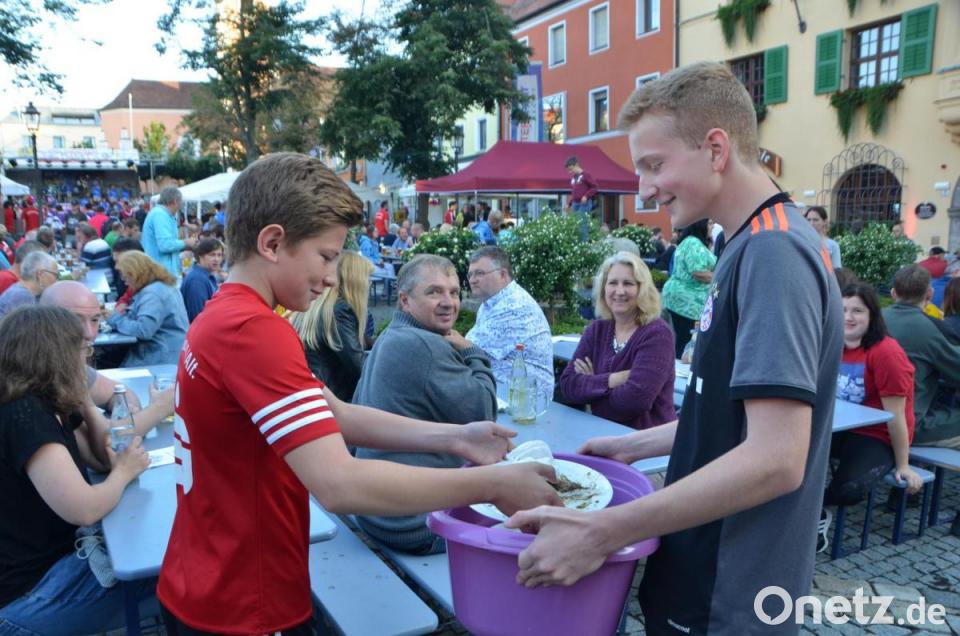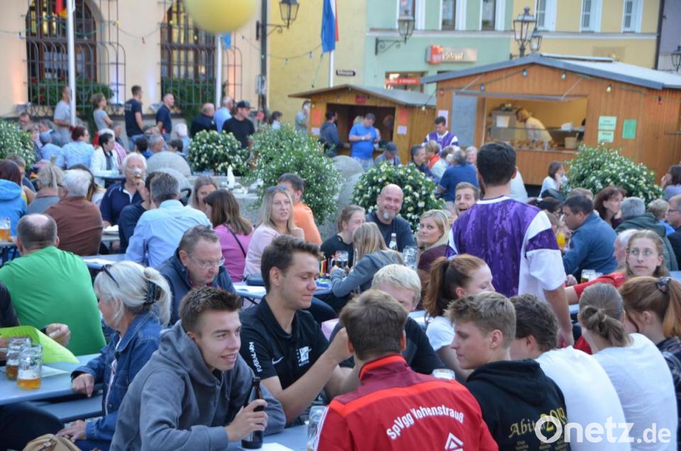 Man nehme einen Schöpfer Gelassenheit, eine Wanne Frohsinn und einen Löffel Beschaulichkeit und mische diese zusammen. Heraus kommt ein fabelhaftes SpVgg-Altstadtfest. Für den Aufbau am Morgen brauchte der Helferstab noch regenfeste Kleidung. Doch pünktlich zum Abend verzogen sich die Wolken und die Sonne kam zum Vorschein für einen ausgezeichneten Festabend, der bis in die Nacht dauern sollte. Aus allen Himmelsrichtungen kamen die Gäste und bevölkerten den Platz vor dem Rathaus. Das erste Fass Moosbacher Scheuerer-Bier war längst gezapft und die Fußballer gaben als Bedienungen eine gute Figur ab. Die Essenstände waren bestens auf den Ansturm vorbereitet. Die SpVgg-Macher hatten alle Hände voll zu tun, die langen Menschentrauben abzuarbeiten, die sich vor den Grills und Öfen aufbauten. Der 5:1-Erfolg der ersten Mannschaft gegen den FC Weiden-Ost wenige Stunden zuvor beflügelte die Fußballer geradezu und der Feierlaune der SpVgg-Anhänger stand nichts im Wege. Die Original Waidhauser Blasmusik spielte zünftig auf und verbreitete Oktoberfeststimmung. Das Gefühl, dass an diesem Ort die ganze Welt noch in Ordnung ist, breitete sich aus. Ein schönes Fleckerl, wo man ankommt und einfach nur genießt. Der Sonntag verhieß bestes Festwetter und so können die Verantwortlichen bestimmt auf ein super gelungenes Altstadtfest 2019 anstoßen.