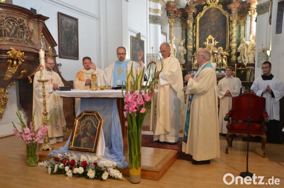 Hohe Ehre kam Pfarrgemeinderätin Hannelore Hansliková zu, die das Bild der "Schmerzhaften Muttergottes", geschmückt mit einer weißen Stola um die Schultern, in der Prozession zur Dekanalkirche tragen und vor dem blumengeschmückten Altar abstellen durfte. Seit jeher habe man sich auf die mütterliche Liebe der Muttergottes verlassen, sagte Pfarrer Jirí Hájek, für den es eine große Ehre war, dass Dekan Kruschina aus Roding mit den Wallfahrern diesen Festgottesdienst feiert. Die Feier wurde vom "Hausorchester" und dem Chorensemble aus Prag unter Leitung von Adolf Melichar und Organist Antonín Stehlík zu einem musikalischen Hochgenuss. Aufgeführt wurde die barocke Messe von Frantisek Václav Habermann. Pfarrgemeinderatssprecher Josef Felber aus Stríbro und Maria Kopp aus Unterlind trugen die Lesung vor.
