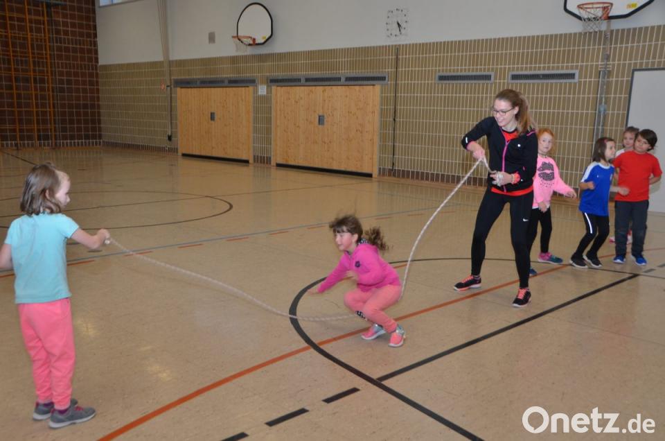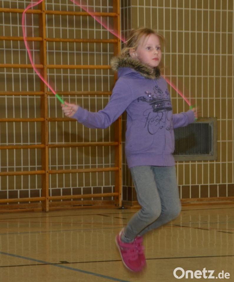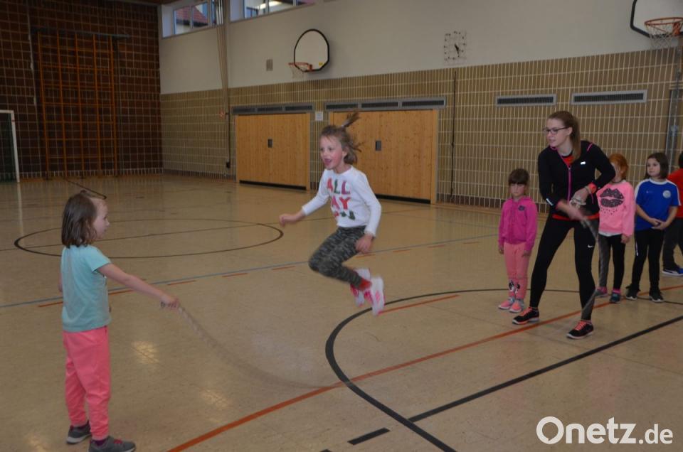 Während sich die Kleinsten von fünf bis sieben Jahren noch etwas schwer tun, im Takt über das schwingende Seil zu springen und im richtigen Moment vom Hallenboden abzuheben, klappt das bei den Älteren schon prima. „Meine Mama hat mich einfach angemeldet“, berichtet Helena Hager und ist nun ganz begeistert, weil auch ihre Freundin an ihrer Seite hüpft.