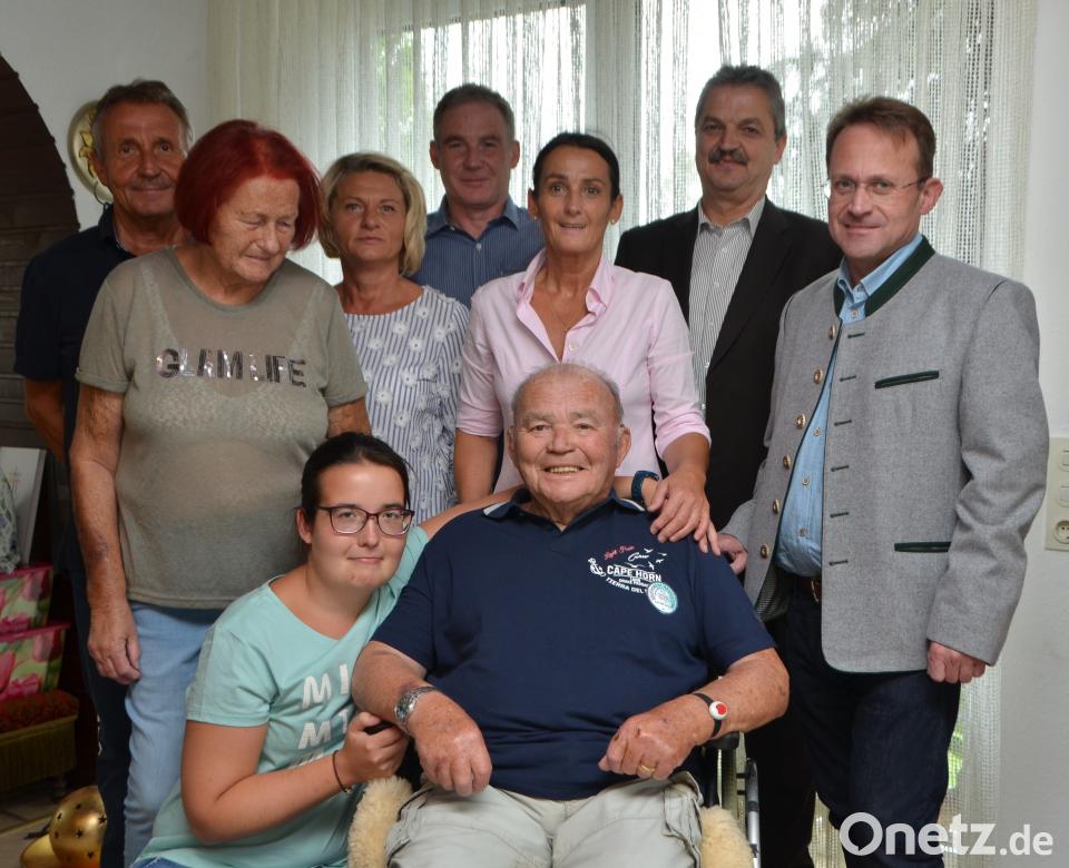 Mit seinem Hündchen "Edi" war Treitz im Ruhestand ein unzertrennliches Gespann und täglich auf den Straßen anzutreffen. Zur rechten Zeit schaute er auch im Rathaus vorbei, um etwaige Missstände beim Bürgermeister anzuprangern oder ihm gute Ratschläge zu erteilen. Wenn es das Wetter erlaubt, ist Treitz mit seiner Ehefrau stets auf der Terrasse anzutreffen. Dekan Alexander Höslwünschte dem Paar Gottes Segen. Natürlich gratulierten auch die fünf Enkel ihren Großeltern zu diesem seltenen Fest und wünschten noch viele gemeinsame Jahre für die Eltern.