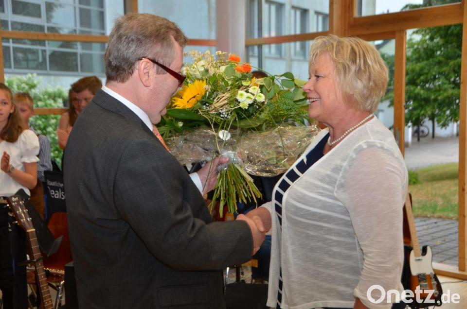Realschuldirektor Andreas Meier kann und will es sich nicht vorstellen, dass er seine Tür zum Sekretariat zukünftig aufmacht und seine Sekretärin Lydia Karl nicht mehr an ihrem angestammten Platz hinter dem Schreibtisch vorfindet. „Zu sehr hat man sich daran gewöhnt und zu sehr wurde ich als Chef von ihr verwöhnt, von einer Sekretärin mit Leib und Seele“, bekannte er freimütig. „Keine Arbeit zu viel, keine Zeit zu stressig, kein Problem zu groß, dass es nicht umgehend in einer fast möchte man meinen, angeborenen Freundlichkeit, gelöst werden konnte.“ Eine Erfahrung, die Generationen von Schülern ebenso machten, wie Eltern und das Lehrerkollegium in den vergangenen zwei Jahrzehnten.