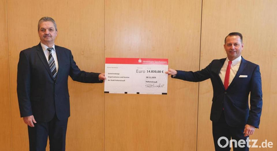 Ein richtiger Spendensegen ging über kirchliche und karitative Einrichtungen, gemeinnützige Vereine oder Organisationen in der Großgemeinde Vohenstrauß und in den Gemeinden Waldthurn, Tännesberg und Leuchtenberg in der Vorweihnachtszeit dank der Vereinigten Sparkasse nieder. 14 830 Euro verteilten Vorstandsvorsitzender Gerhard Hösl und Bürgermeister Andreas Wutzlhofer, zugleich stellvertretender Verwaltungsratsvorsitzender, in diesem Jahr innerhalb der größten Kommune im Landkreis Neustadt/WN.