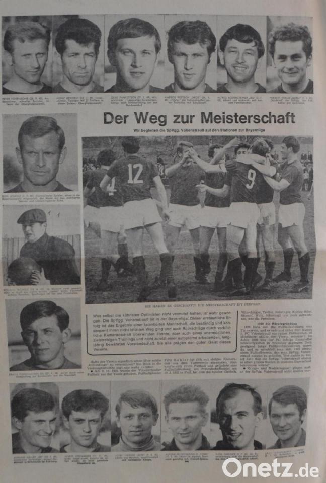 Dieser erstaunliche Erfolg war das Ergebnis einer talentierten Mannschaft, die beständig und konsequent ihren nicht leichten Weg ging und auch Rückschläge durch vorbildliche Kameradschaft überwinden konnte. 50 Jahre später träumen die ehemaligen Spieler wie Peter Führnrohr, Rudi Scholz, Josef „Bepe“ Werner oder Alfons „Fons“ Fleischmann und Ersatztorwart Johann Gmeiner und viele andere mehr noch immer von dieser unglaublich schönen Zeit. Diese grandiose Leistung der damaligen Mannschaft war aber auch untrennbar mit dem Hosenfabrikanten Josef Hölzl verbunden, der die SpVgg als großer Förderer und Gönner unterstützte, aber es war auch der Erfolg eines zielstrebigen Trainings und nicht zuletzt eines aufopfernd arbeitenden, langjährig bewährten Vorstands. All das zusammen prägte den guten Geist dieses Fußballclubs. Ende Mai 1969 gelang das Meisterstück. Die Würfel fielen gegen den TuS Rosenberg und die Vohenstraußer wurden Meister der Landesliga Gruppe Mitte und waren damit Aufsteiger in die Bayernliga.