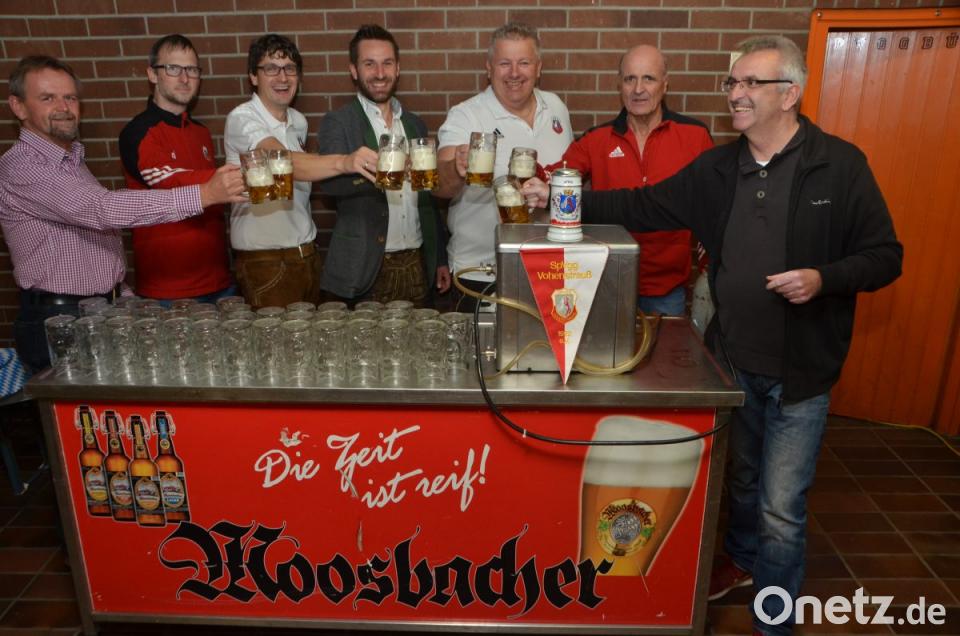 Zu einer Art Vorkirchweih luden deshalb die Fußballer alle Bockbierfans am Freitagabend ins Sportzentrum ein. Gaststätte und Vorraum wurden für die Gäste herbstlich gestaltet. Während sich die verschiedenen Mannschaften der Spielvereinigung noch bei Flutlicht auf dem grünen Rasen beim Training abmühten, kamen bereits die ersten Gäste die Vorsitzender Uli Münchmeier willkommen hieß. In der Küche werkelten die SpVgg-Helfer und richteten für das Vohenstraußer Brotzeitbrettl her. Darauf kamen Geräuchertes, Käse und bayerischer Brotaufstrich sowie Schweizer Wurstsalat im Glas. Daneben gab es auch Leberkäskipferl oder Pfalzgrafenknacker mit Sauerkraut. Der Duft zog durch die gesamte Anlage. Die Gäste brauchten für das starke Gebräu der Moosbacher Brauerei Scheuerer schon eine gehörige Unterlage im Magen, um nicht gleich nach der ersten Mass zu schwächeln. Bernsteinfarbig mit einer schönen Schaumkrone präsentierte sich das Bier in den Gläsern und machte Lust auf mehr. „O’zapft is“, hieß es dann auch kurz nach 19 Uhr, als der Moosbacher Braumeister Uli Scheuerer höchstpersönlich die erste Bockbierhalbe mit einer besonderen Note zapfte und mit den Veranstaltern auf ein erfolgreiches Fest anstieß. Die Gäste wurden von den Geschwistern Baier aus Wittschau musikalisch zünftig unterhalten.