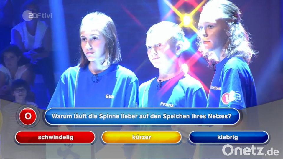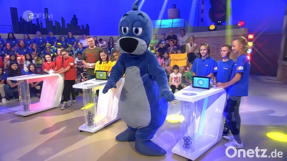 Bei der Frage: „Warum läuft die Spinne lieber auf den Speichen ihres Netzes?“, drückte das Vohenstraußer Team am schnellsten den Buzzer. Franz Ulschmid beantworteten die Frage auch richtig mit „klebrig“. Die Klassenkameraden die im Publikum saßen, spornten die Kandidaten lautstark an und freuten sich mit ihnen wenn sie Bälle als Punkte einsackten. In einer Badewanne im Studio machte Piet, das Maskottchen und der Liebling aller Kinder einen ganz besonderen Apfelstrudel. Der Sympathieträger warf einfach einen Apfel in den Sog des Wassers in einer auslaufenden Badewanne.