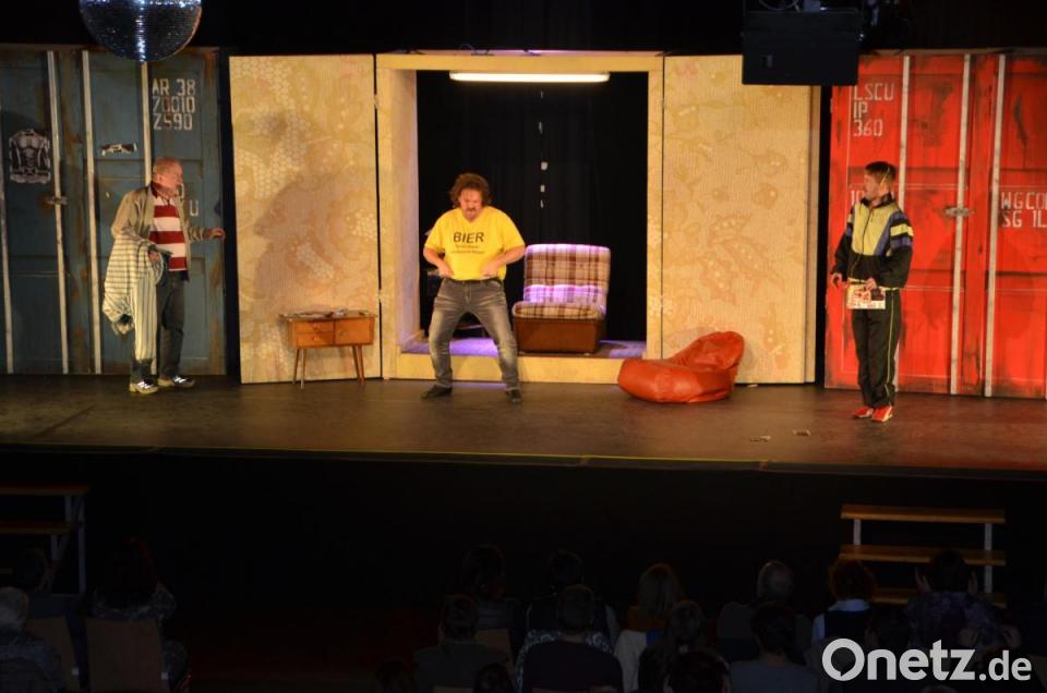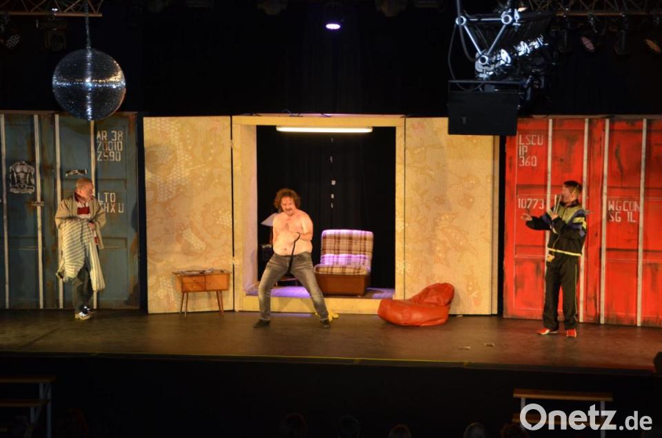 Um männliche Ehre und Zahlungsfähigkeit wieder herzustellen, entschließen sich die Freunde zu einem gewagten Schritt: Obwohl Bier und harte Arbeit ihre Körper nicht gerade zu Sexsymbolen und Superbodys geformt hat, planen sie ihre eigene Stripshow und kämpfen um ihre Würde, indem sie die Hüllen fallen lassen. „Frauen sehen Männer nur mehr als reines Sexobjekt und Dick und Doof zeigen ihren Schniedelwutz“, unken sie noch zuvor. Die Dialoge sind rustikal oberpfälzisch und manchmal schon etwas gewagt. Immerhin zeigen die „wilden Stiere“ im Laufe der Vorstellung viel nackte Haut. Zumindest den weiblichen Zuschauern gefiel’s mächtig. Gespielt wird das Stück noch zweimal. Dafür gibt es noch Restkarten. Dann soll es auch das letzte Mal gewesen sein, informiert LTO-Geschäftsführer Wolfgang Meidenbauer. „Die drei Seecontainer des Bühnenbilds sind mittlerweile durch den Auf- und Abbau verbraucht.“ Weil Julian Strucks Stimme am Donnerstagabend versagte wurde ihm einfach von Regisseur Till Rickelt eine stumme Rolle zugewiesen. Das sei einfacher gewesen, als den Part ganz zu streichen, informierte er vorab das Publikum.