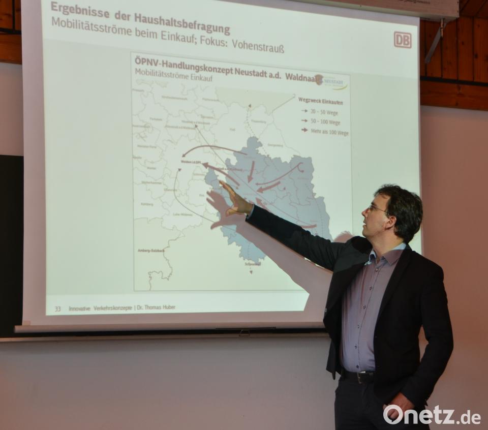 Doch nur einige wenige Fahrgäste aus der Region wollten sich offensichtlich beteiligen. ÖPNV-Sachgebietsleiterin Andrea Höning vom Landratsamt Neustadt/WN war mit Dr. Thomas Huber, Leiter Innovative Verkehrskonzepte DB Regio Bus, Region Bayern vor Ort, um das vorerst erarbeitete Handlungskonzept aufgrund der im April und Mai durchgeführten Haushaltsbefragungen vorzulegen und sich der Diskussion zu stellen. Es stütze sich nicht auf blanke Analysen sondern man wolle eine umsetzungsorientierte Planung vollziehen mit sinnvollen Vorschlägen die auch wirtschaftlich umsetzbar und nachhaltig sind. Für Huber und seine Mitarbeiter eine herausfordernde Aufgabe, vor allem in einem so großen Landkreis wie diesem. Man wolle deswegen nicht nur Daten sammeln sondern aus verschiedenen Blickwinkeln mit denjenigen reden die den ÖPNV nutzen. Alles was Huber an diesem Abend vorlegte, dient lediglich als Anreiz und Impuls für Gespräche. Im ländlichen Raum soll die Flächenbedienung durch den öffentlichen Personennahverkehr nachhaltig und zügig verbessert werden. In dünn besiedelten Gebieten will man eine angemessene Verkehrsbedienung durch den ÖPNV, beispielsweise mit bedarfsgesteuerten Bedienungsformen sicherstellen. Auch Bürgerbusse kamen an diesem Abend ins Gespräch, denn ein klassischer Linienverkehr ist in den dünn besiedelten Gebieten und Ortschaften nicht möglich und kann nur auf den nachfragestarken Hauptachsen betrieben werden.