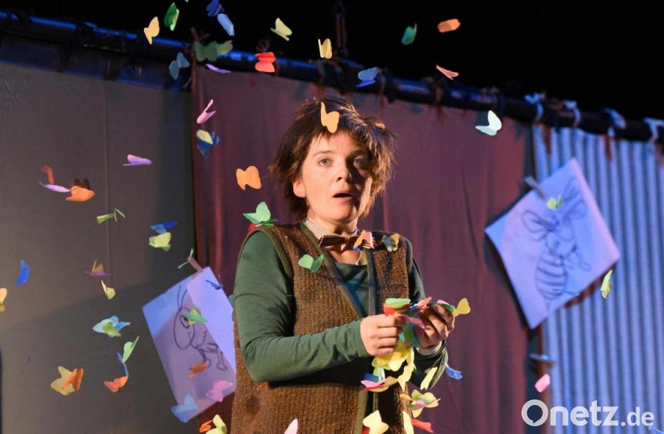 Zum poetischen Auftakt des Kulturherbstes raten die Kinder im Publikum eifrig, welches Tier die „Gestalter der Dinge“ Rodolfo (Doris Hofmann) und Fedora (Magdalena Meier) in der fantastischen Geschichte „Werkstatt der Schmetterlinge“ als Nächstes kreieren. Sie fiebern mit Rodolfo mit auf seiner verzweifelten Suche nach der unvergänglichen, glücklich machenden Schönheit in der Schöpfung. Und lassen sich in der farbenfrohen Inszenierung des Stoffs nach Gioconda Belli und Wolf Erlbruch schließlich von den „fliegenden Blumen“, den Schmetterlingen, bezaubern.