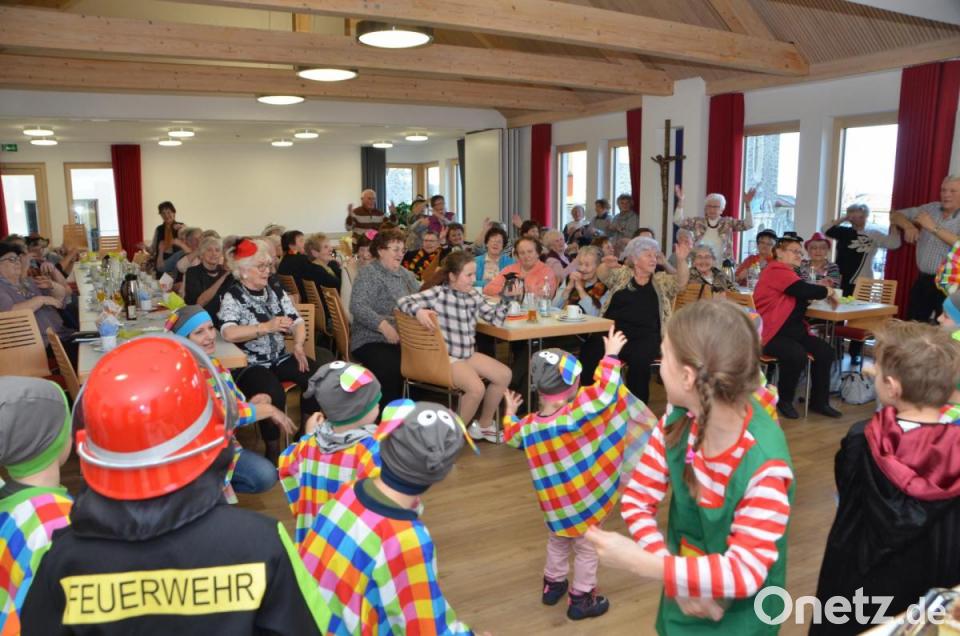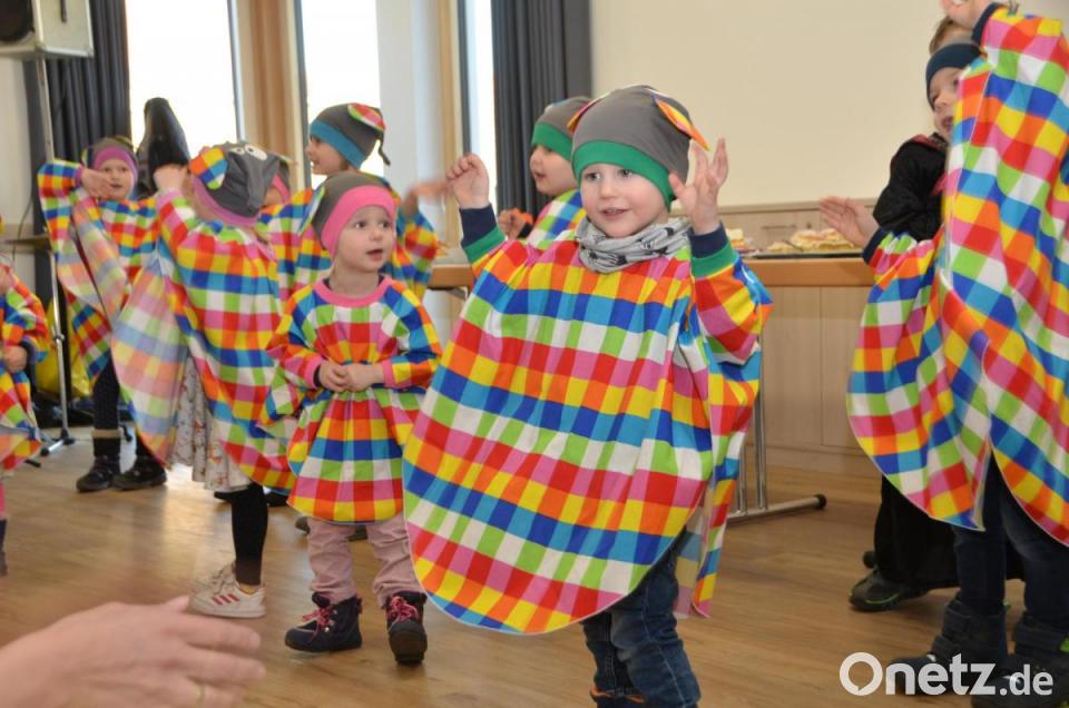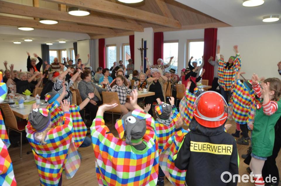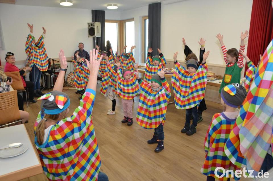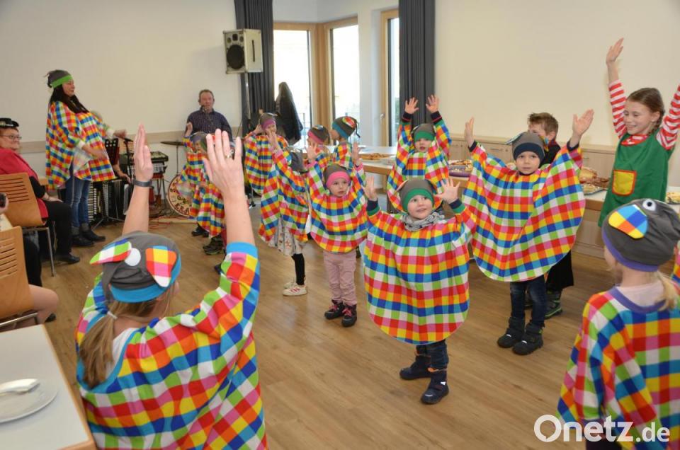 Zum Tanz spielten die Brüder Anton und Josef Moll schwungvoll auf. Vor allem die Evergreens kamen in der lustigen Gesellschaft an. Lotte Hofmann eröffnete die Tanzrunden, bevor der städtische Kindergarten Anton Ferazin aus Roggenstein mit Leiterin Birgit Zant und den Erzieherinnen und einer großen Schar Mädchen und Buben einen Besuch abstatteten. Heuer verwandelten sich die Kinder in der fünften Jahreszeit in „Elmar, den Elefanten“. Bunt statt grau heißt dessen Devise, denn Elmar ist ein bunter und karierter Zeitgenosse, der andere mit Leichtigkeit ansteckt.