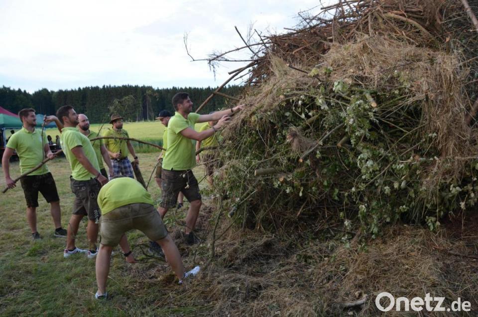Während sich der Platz um das Johannisfeuer des „Jung’sell’n Club“ auf dem Fuchssteinach, hoch über Vohenstrauß gut füllte, waren die jungen Männer noch damit beschäftigt, die letzten Äste auf den Johannisfeuerstapel zu schichten, der bei Anbruch der Dunkelheit entfacht wurde. Ein Shuttle-Bus brachte die Gäste bequem auf die rund vier Kilometer entfernte Anhöhe und später auch wieder zurück. Der Holzstapel wurde eigens noch wenige Stunden davor umgeschichtet worden, damit sich dort kein Tier versteckt hält, das dann qualvoll verenden würde. Die Burschen handelten beispielgebend.