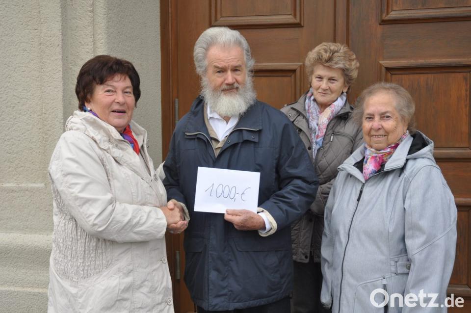In diesem Jahr hat sie schon oft ihren Stift gezückt und hochdotierte Überweisungsbelege für Missionare aus der Heimat und aus dem Bekanntenkreis ausgestellt. Nun trafen Busch, Elfriede Riedlbauer und Isabella Klein Pater Ferdinand aus Tröbes an der katholischen Stadtpfarrkirche, um ihm 1000 Euro für die Menschen im Kongo zu überreichen. Jährlich stricken die fleißigen Frauen, zu denen auch Elfriede Ebenhöh gehört, mehr als 200 Paar Socken, die sie bei Basaren anbieten. Doch das ist längst noch nicht das Ende der Fahnenstange.