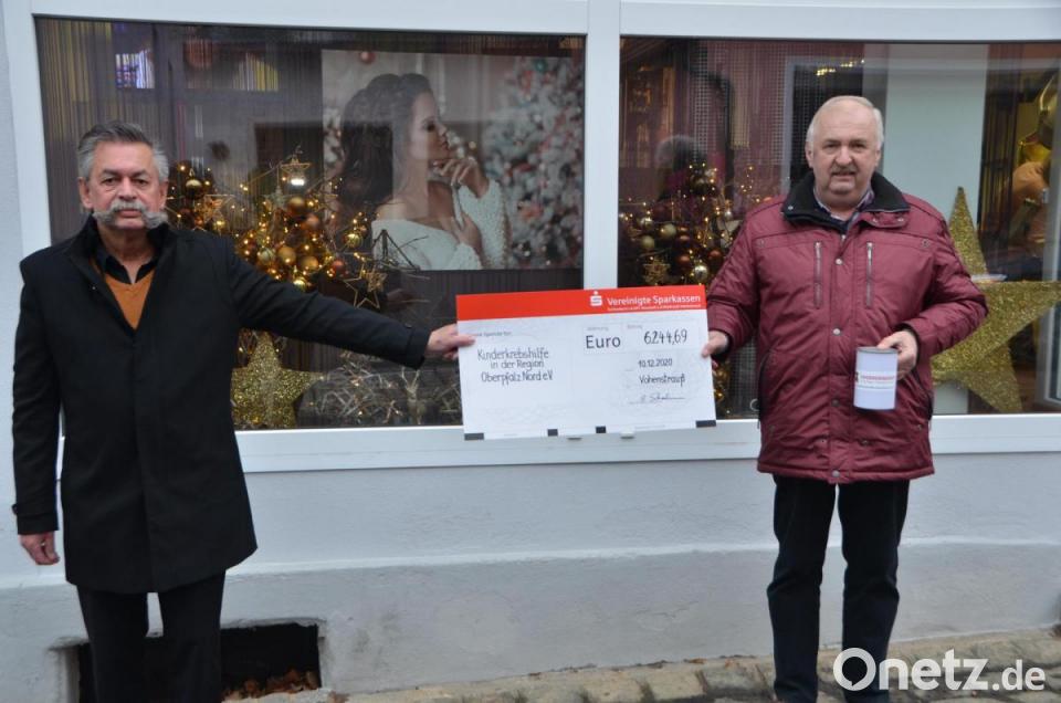 Die Benefiz-Haarschneideaktion im Friseurgeschäft Günther Schönberger „Styling gegen Krebs“, die eigentlich zum 13. Mal stattfinden sollte, fiel der Corona-Pandemie zum Opfer. Trotzdem überreichte er dem Vorsitzenden der Kinderkrebshilfe in der Region Oberpfalz Nord, Herbert Putzer, 6244,69 Euro. Das Geld stammt aus den Spendendosen der Organisation, die bei Schönberger das ganze Jahr über für den Vereinszweck Geld sammeln. Schönberger selbst verzichtete heuer auf Kundengeschenke zu Weihnachten und legte eine schöne Summe für die Kinderkrebshilfe dazu.