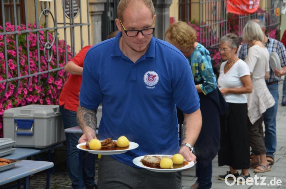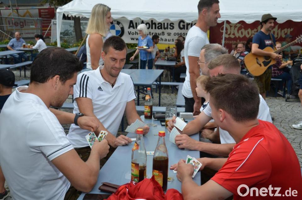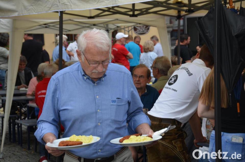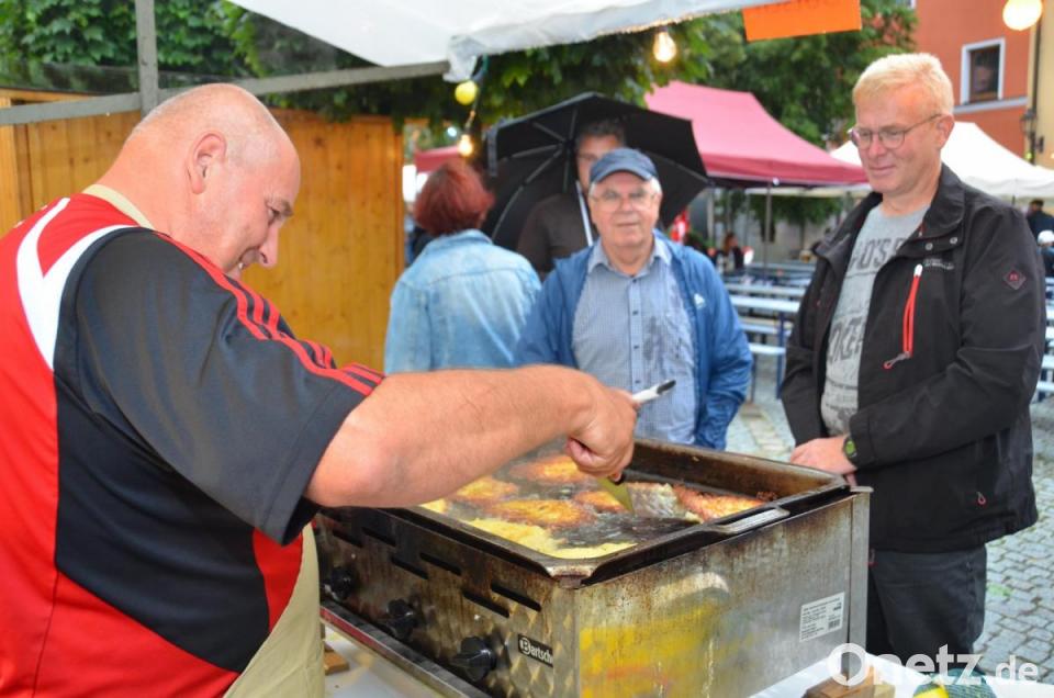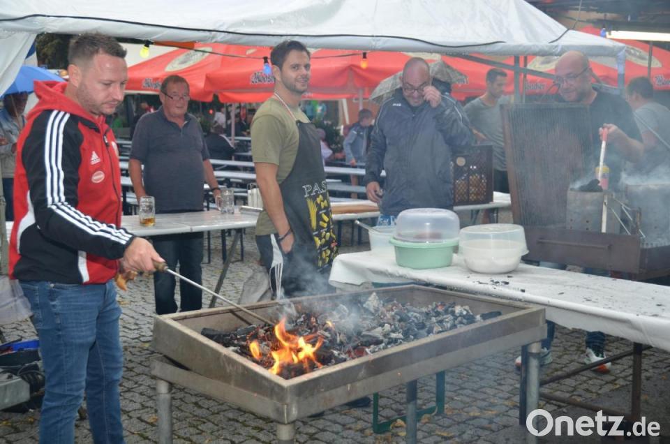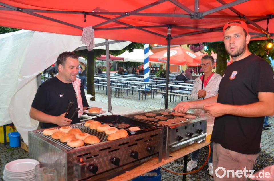 Die Stimmung kannte jedenfalls keine Grenzen. Vollauf mit dem Geschäftstreiben zufrieden war auch Norbert Puff, Chef der „Rot-Weiß“-Kegler, die sich mit einem Dotsch-Stand alljährlich in das Fest einbringen. Mehr als 50 Kilogramm geriebene Kartoffeln wurden bereits am ersten Abend zu dieser krossen Spezialität verarbeitet. Mehr als im Vorjahr. Die gleiche Menge war auch für den zweiten Tag vorbereitet.