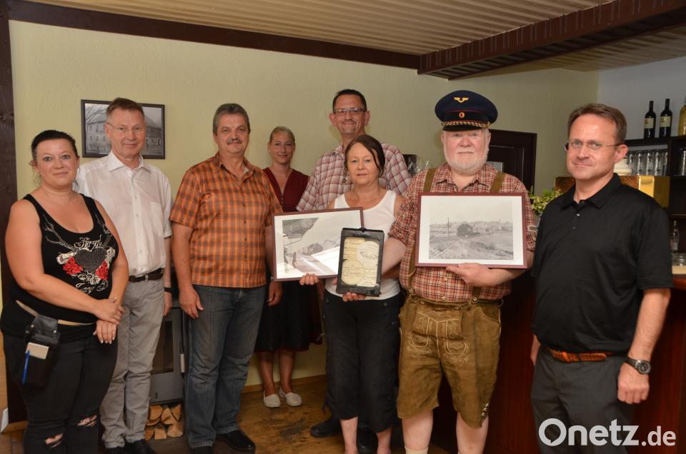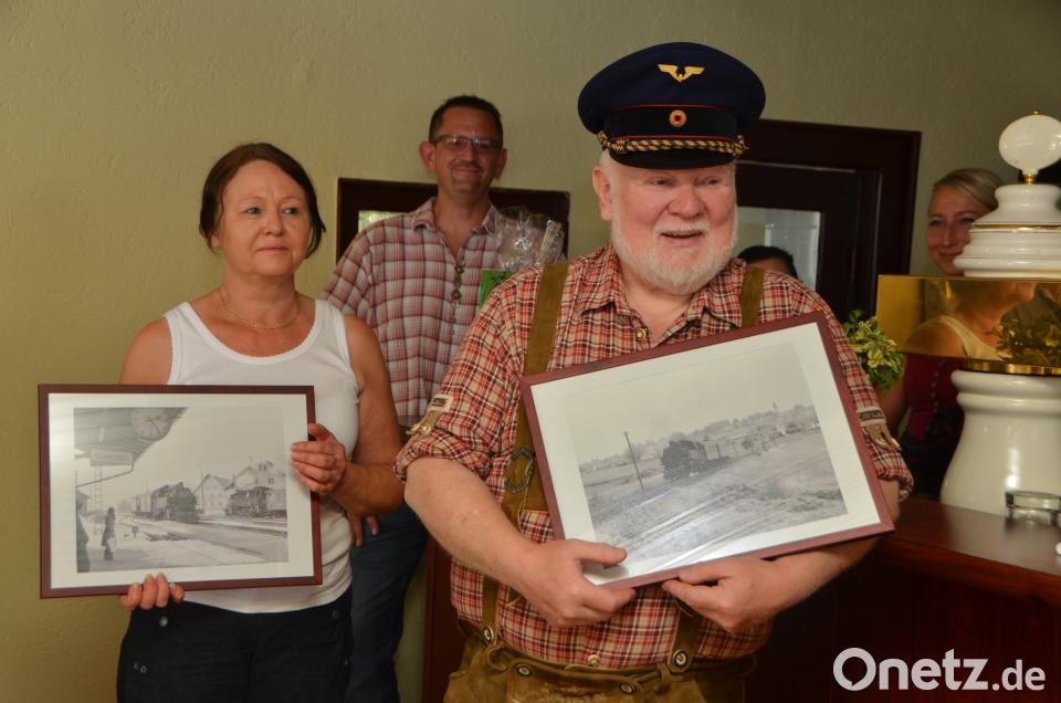 Als Mitbringsel hatte der Rathauschef eine gerahmte Aufnahme vom Vohenstraußer Bahnhof aus dem Jahr 1973 dabei, als noch Betrieb herrschte, und als zweites Bild eine Lokomotive, ähnlich dem bekannten Bockl. Als weitere Besonderheit überreichte das Stadtoberhaupt aus dem Fundus von Heinrich Aichinger eine Original-Zugführermütze. Vom Ehepaar Schittenhelm kam ein weiteres Geschenk: ein schmiedeeisernes Fahrplan-Aushängeschild aus Göttingen mit vier Bierdeckeln. Braumeister Rigobert Hösl aus Reuth wünschte ebenfalls viel Erfolg mit seinem Gerstensaft.