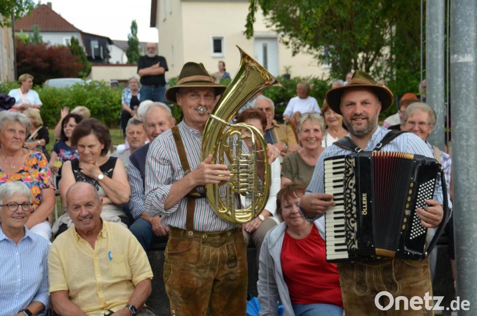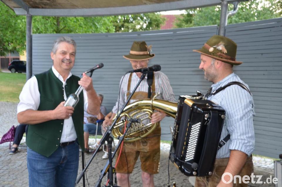 „Hauptsache in Vohenstrauß bleibt es trocken“, wünschte sich Bürgermeister Andreas Wutzlhofer mit Blick zu den dunklen Regenwolken, die nahten. Sein Wunsch ging in Erfüllung und das Wetter hielt. Die beiden Musikanten, wusste der Rathauschef, spielen nicht nach Noten, sondern nach Mass'n. Nachdem Manfred Wild bereits eine leere Flasche Bier ins Publikum hielt, versicherte er: „Ich kann euch versprechen, es bleibt trocken.“ Mit der „Amselpolka“ hätten die Zuhörer gleich was zum Zwitschern, meinten die Musikanten verschmitzt.