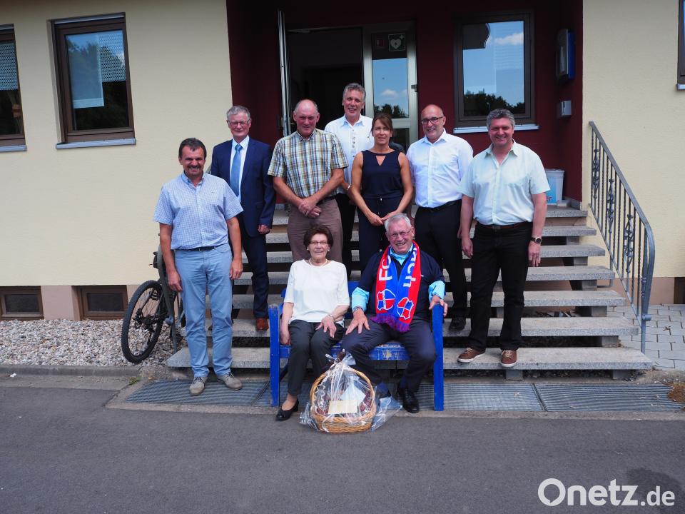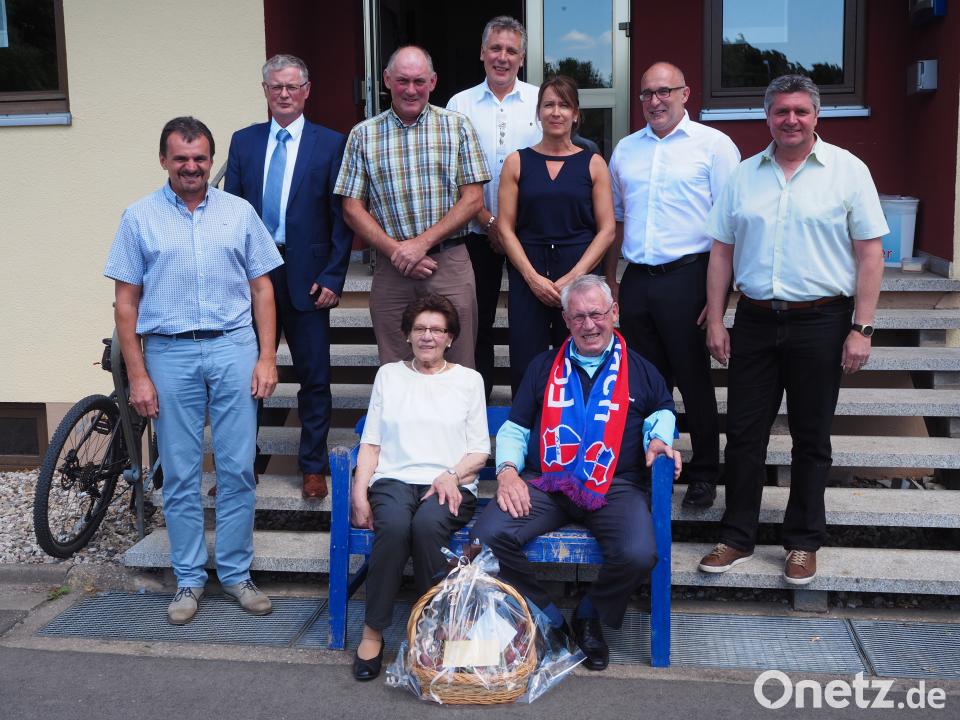 FC-Vorsitzender Hans Wiesnet fasste bei der Gratulationscours die Verdienste des Jubilars am besten zusammen: „Arno, du bist die Stütze und treue Seele des Vereins.“