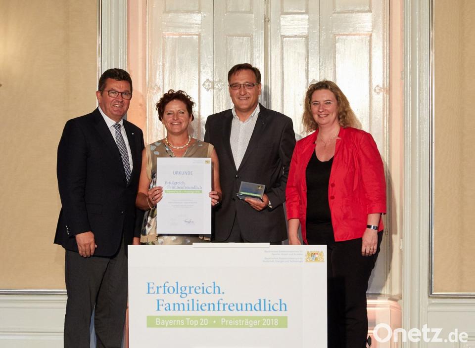 In einer eindrucksvollen Feierstunde im Nymphenburger Schloss nahmen Armin und Carola Sengenberger in Anwesenheit von Landrat Andreas Meier die Auszeichnung aus den Händen von Familienministerin Kerstin Schreyer und Wirtschaftsminister Franz Josef Pschierer entgegen. "Sie sind Vorbilder, die hoffentlich viele Nachahmer finden", lobte Schreyer die Sengenbergers und würdigte insbesondere die Unterstützung der Mitarbeiter bei familienfreundlichen Arbeitszeiten. "Die Vereinbarkeit von Familie und Beruf hat in der bayerischen Wirtschaft im Allgemeinen und bei der Firma Sengenberger - Haare und Kosmetik im Besonderen hohen Stellenwert. Das unternehmerische Engagement ist hier auf hohem Niveau", stellte Wirtschaftsminister Pschierer heraus. "Eine höhere Mitarbeiterzufriedenheit und -motivation führen zu einer festeren Mitarbeiterbindung. Gerade in Zeiten des Fachkräftemangels kann das für unsere bayerischen Unternehmen, wie das Beispiel von ,Armin Sengenberger - Haare und Kosmetik' zeigt, zu einem echten Erfolgsfaktor werden."