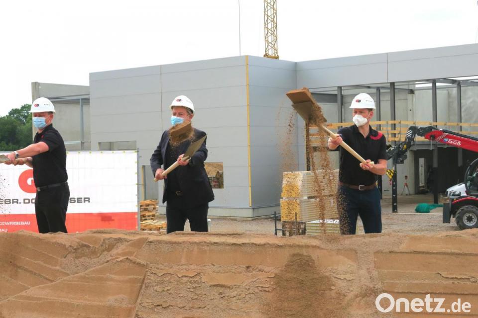 Im Gewerbepark entsteht das neue VW-Autohaus. Inhaber Ingo Maschek erläuterte beim Spatenstich am Dienstag die Unternehmensstrategie: Nach Fertigstellung der Hallen zum Ende des Jahres werde der Betrieb aller sechs Marken des VW-Konzerns an einem Standort präsentieren können. Landrat Thomas Ebeling und Bürgermeister Thomas Falter begrüßten die unternehmerische Initiative und werteten sie als "positives Signal in einer schwierigen Zeit".