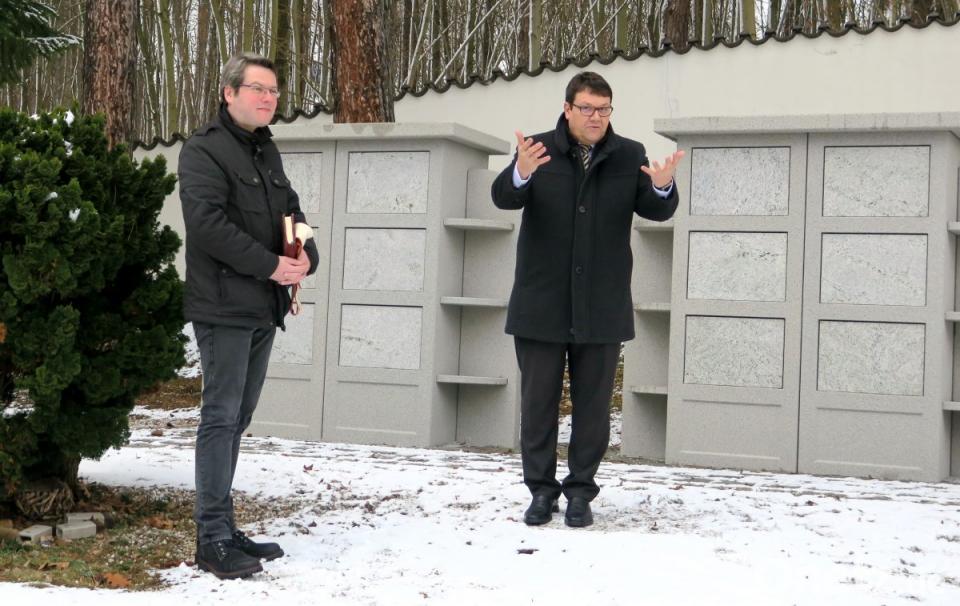 Die Gemeinde hat auf die steigende Nachfrage reagiert und weitere 70000 Euro in die Errichtung von neuen Urnenstelen investiert. Pfarrer Christoph Melzl segnete die Anlage am Dienstag auf dem Friedhof. Entstanden sind 24 Familienurnenkammern mit der Möglichkeit, seitlich Blumen abzulegen. „Wir setzen unser Konzept aus dem Jahre 2014 konsequent fort“, sagte Bürgermeister Thomas Falter bei der Einweihungsfeier. Auch in Wackersdorf wachse die Nachfrage nach Urnenbestattung. Der Gesamtbestand ist nach der Erweiterung auf 84 Urnenkammern gestiegen.