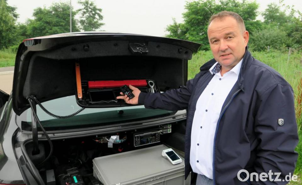 Der Vorteil: Die Einheit arbeitet kabellos und überträgt die gefahrene Geschwindigkeit über einen W-Lan-Router auf den Laptop des Polizeifahrzeuges. Wird die zulässige Höchstgeschwindigkeit überschritten, löst ein Blitzer aus und lichtet den Fahrer und das Kennzeichen des Fahrzeuges ab. Motorradfahrer werden von vorne und hinten fotografiert. Wer zu schnell gefahren ist, bekommt ein paar Tage später „Post“.