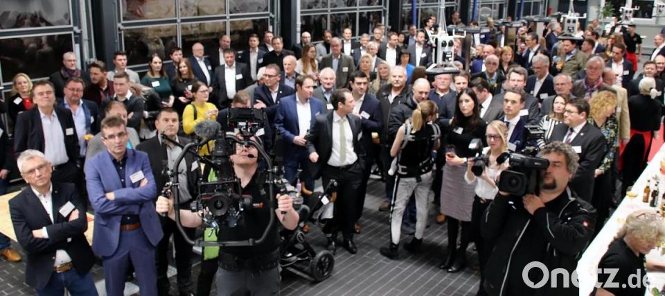 In der noch blitzblanken Werkstatt fand zu Beginn des Abends der Empfang für die zahlreichen Gäste statt, zu denen der gut gelaunte Inhaber und Geschäftsführer Ingo Maschek erhöht auf einer Treppe stehend sprach. Auch Landrat Thomas Ebeling, der Wackersdorfer Bürgermeister Thomas Falter und Pfarrer Christoph Melzl stiegen für ihre Ansprachen und für die Segensworte nach oben. Melzl brachte dabei das Kunststück zustande, einer öko-gebeutelten Autoindustrie positive Seiten in Gottes Schöpfungsplan zuzuschreiben, bevor er zur Weihwasser-Phiole griff. "Das war gerade der Werbeblock", merkte er schmunzelnd an, bevor er Gottes Wohlgefallen und den Erfolg des Betriebs erflehte. Ebeling und Falter, die auf die erfolgreichen Verhandlungen bei den Genehmigungsverfahren für den Neubau hinwiesen, outeten sich schließlich zusammen mit Ingo Maschek als treue Fans von Jahn Regensburg. In so mancher Halbzeitpause habe man sich über den Baufortschritt und die Einweihung unterhalten, hieß es. Da passte es ganz gut, dass Hans Rothammer, Vorstandsvorsitzender vom SSV Jahn Regensburg, ebenfalls zu Gast war.