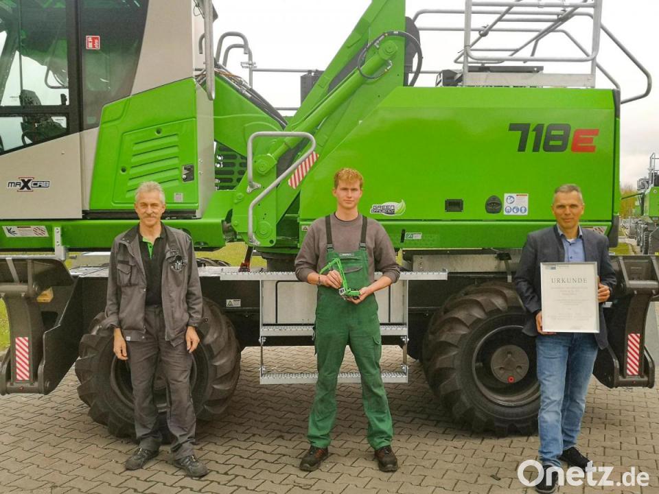 Freude beim Maschinenbauer Sennebogen Wackersdorf: Mit Florian Irlbacher ist der beste Fertigungsmechaniker Ostbayerns bei der Firma tätig. Laut einer Pressemitteilung zeichnete die Industrie- und Handelskammer kürzlich die besten Absolventen für ihre hervorragenden Prüfungsergebnisse aus. Florian Irlbacher, der im September 2018 als Fertigungsmechaniker bei Sennebogen begonnen hatte, holte erstmals die Auszeichnung für den Jahrgangsbesten ins Unternehmen nach Wackersdorf. Für Geschäftsführer Alexander Scherer und Ausbilder Gerhard Peter war das laut Mitteilung neben dem persönlichen Erfolg auch ein deutliches Zeichen für eine erfolgreiche und nachhaltige Ausbildung im Unternehmen. Bei einer kleinen Feierstunde ehrten sie Florian Irlbacher auch vor den weiteren Auszubildenden nochmals für sein Engagement und den Erfolg.