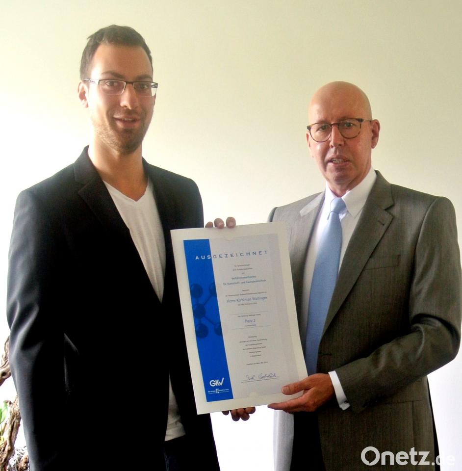 Die Urkunde und ein Preisgeld von 500 Euro überreichte Verbandsgeschäftsführer Ralf Olsen. Korbinian Wallinger erhält außerdem ein Jahresabonnement der Zeitschrift „Kunststoffe“ und wird in den „Club der Besten“ aufgenommen. In dieser Runde treffen sich die Förderpreisträger aller Jahrgänge regelmäßig zum Meinungsaustausch.
