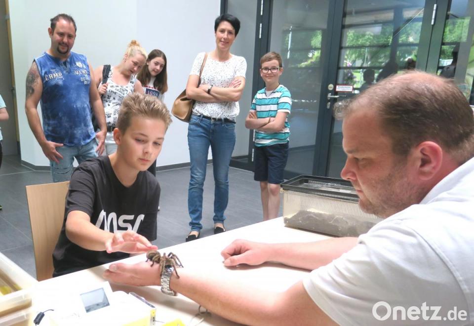 Schon als Kind war Giovanno Neigert (Feuchtwangen) fasziniert von Spinnen. Mit 14 Jahren brachte er zum Entsetzen seiner Mutter eine Vogelspinne mit nach Hause. Im Laufe der Zeit kamen immer mehr Tiere dazu. Vor neun Jahren entschied sich der Insektensammler, sein Hobby zum Beruf zu machen und auch andere Menschen für seine Leidenschaft zu begeistern. Nun machte die Wanderausstellung "Insektenphobie" in der Oberpfalzhalle Station. "Spinnen zum Anfassen" war das Motto der Schau mit Spinnen, Skorpionen, Riesentausendfüßlern, Gottesanbeterinnen und Heuschrecken. Nicht alle Kinder waren so mutig wie der elfjährige Louis aus Wackersdorf, der sich eine Riesenspinne über die Hand krabbeln ließ.