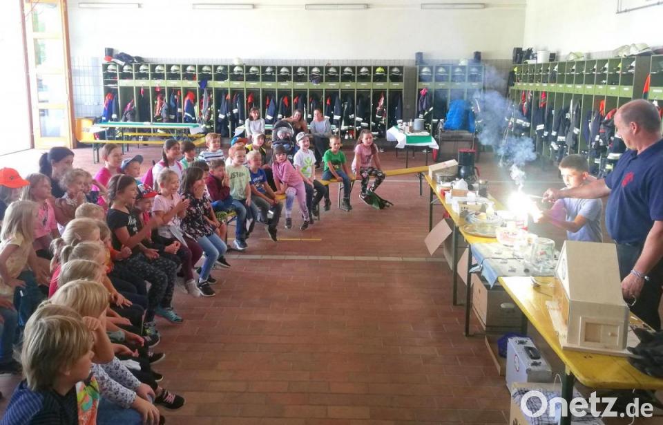 Der Fachbereichsleiter für Brandschutzerziehung beim Kreisfeuerwehrverband Neustadt, Thomas Mathes, eröffnete den Nachmittag. Was braucht ein Feuer zum brennen? Was ist gutes und was böses Feuer? Das alles zeigte Mathes den Kindern anhand von kurzweiligen Versuchen und Erklärungen.