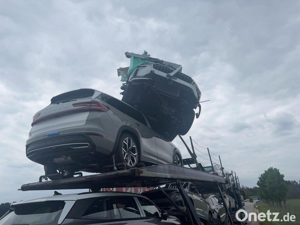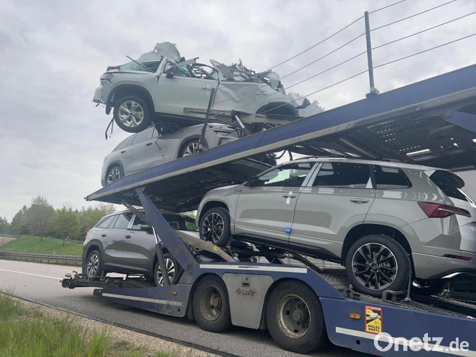 Wie die Polizei mitteilte, hatte der Lastwagenfahrer nach einem Zwischenstopp vergessen, die obere Plattform wieder abzusenken. Dadurch überschritt das Fahrzeug die zulässige Höhe. Für die Bergung der Fahrzeuge und die Reinigung der Unfallstelle war der rechte Fahrstreifen etwa vier Stunden gesperrt. An der Brücke entstand nach ersten Einschätzungen kein nennenswerter Schaden. Der Schaden an den Neuwagen wird auf rund 100.000 Euro geschätzt. Verletzt wurde bei dem Unfall niemand.