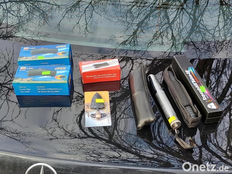 Ebenfalls am Sonntag entdeckten die Beamten bei der Kontrolle eines 63-jährigen Deutschen gleich mehrere verbotene Gegenstände. Obwohl der Mann das Mitführen zunächst verneinte, fanden die Einsatzkräfte bei der Durchsuchung seines Fahrzeugs unter anderem drei nicht zugelassene Elektroimpulsgeräte, einen Totschläger, ein Faustmesser sowie drei Teleskopschlagstöcke. Die Bundespolizei beschlagnahmte sämtliche Gegenstände und leitete ein Strafverfahren ein.
