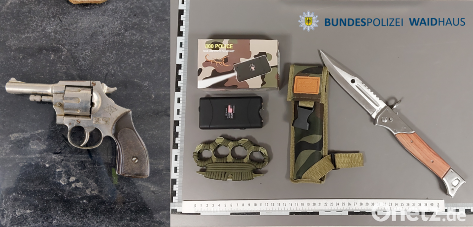 Die Bundespolizei Waidhaus hat diesen Donnerstag, 8. Januar, bei Grenzkontrollen in Waidhaus und Waldsassen mehrere Waffen und Drogen sichergestellt. Laut einer Pressemitteilung der Bundespolizeiinspektion Waidhaus entdeckten die Beamten in einem Pkw mit zwei tschechischen Staatsbürgern einen Revolver, für den keine Erlaubnis vorlag. Zudem fanden die Polizisten etwa 46 Gramm Marihuana und 2,1 Gramm Amphetamin sowie zwei Einhandmesser. Der Fahrer des Fahrzeugs besaß keinen gültigen Führerschein und durfte die Fahrt nicht fortsetzen.