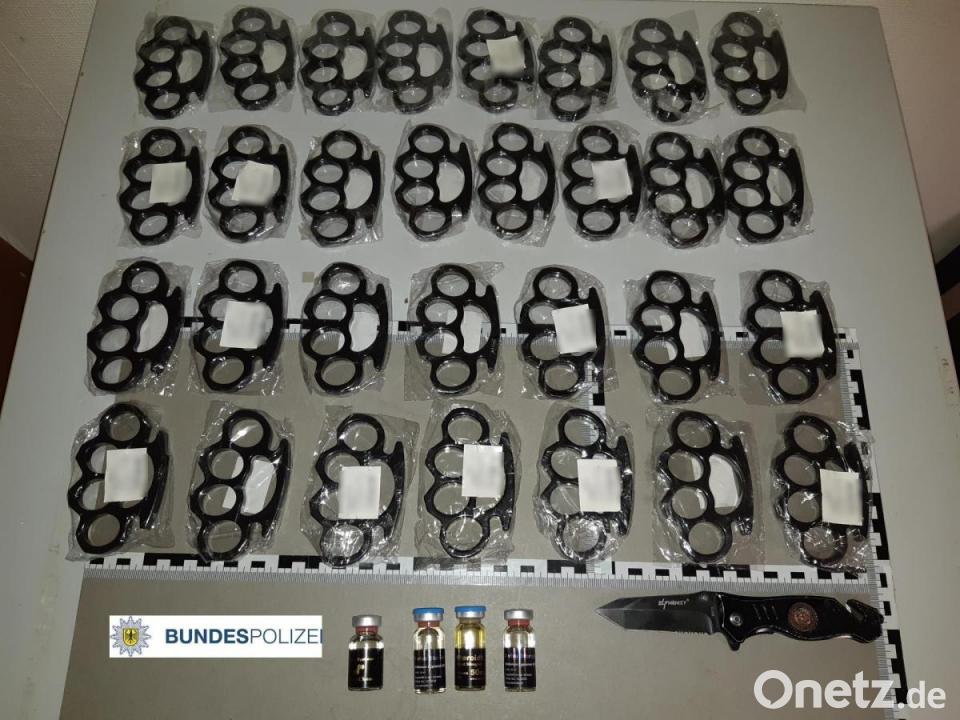 Im Kofferraum des Mercedes fanden die Fahnder 30 Schlagringe, die laut Bericht feinsäuberlich in einer Tasche verstaut waren, sowie vier Flaschen mit einem verbotenen Dopingmittel in einem schwarzen Stoffbeutel. Die Gegenstände wurden beschlagnahmt und im Asservatenraum der Waidhauser Bundespolizei eingelagert.