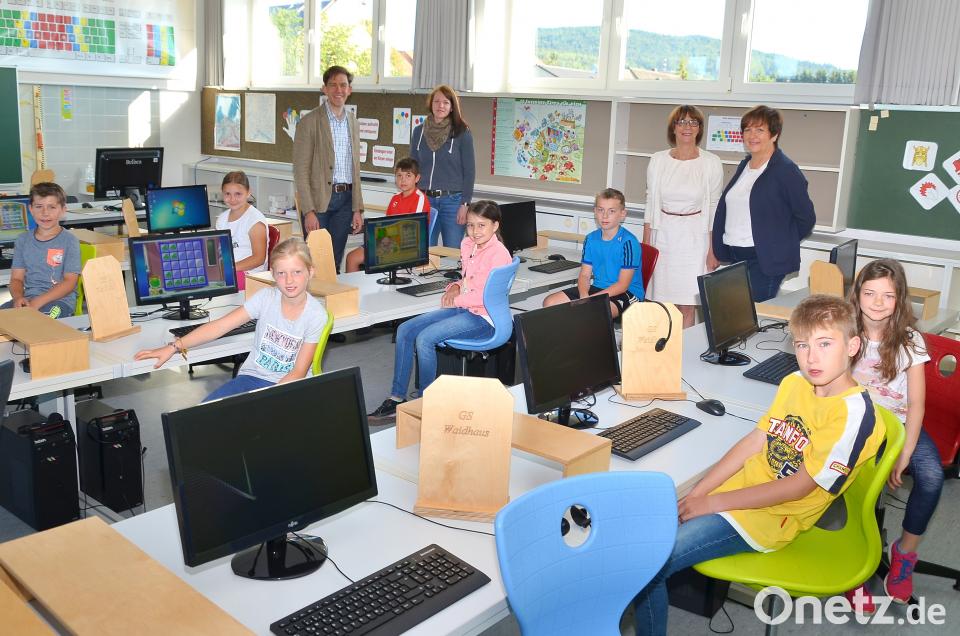 (fjo) Die 4. Klasse leistete an diesem Morgen ganz bewusst überstunden, wollten die Mädchen und Buben doch die Ersten sein, die die neuen Stühle im Computerraum ausprobierten. Schon um 7.30 Uhr saß die komplette Klasse auf dem Mobiliar. Bunt gemischt, in den Farben Rot, Grün, Blau und Schwarz bringen die Sitzgelegenheiten einen Farbtupfer in den EDV-Raum. Schulleiter Lothar Drachsler hatte den vorzeitigen Handlungsbedarf für eine Neuanschaffung gesehen: "Die bisherigen Stühle lösten sich schon auf." Zwar sei die Erneuerung im Haushalt 2019 vorgemerkt gewesen, sagte Bürgermeisterin Margit Kirzinger. Sie könne jedoch dem vorzeitigen Ersatz nur positive Seiten abgewinnen. Der Elternbeirat um die Vorsitzende Marlene Schmucker hat die Anschaffung mit einer Spende von 1000 Euro möglich gemacht. Freilich mussten dazu auch die angesammelten Reserven aus den Spenden der Raiffeisenbank von jährlich 300 Euro im Rahmen des Malwettbewerbs angepackt werden. Schließlich kosteten die Stühle insgesamt 1900 Euro.