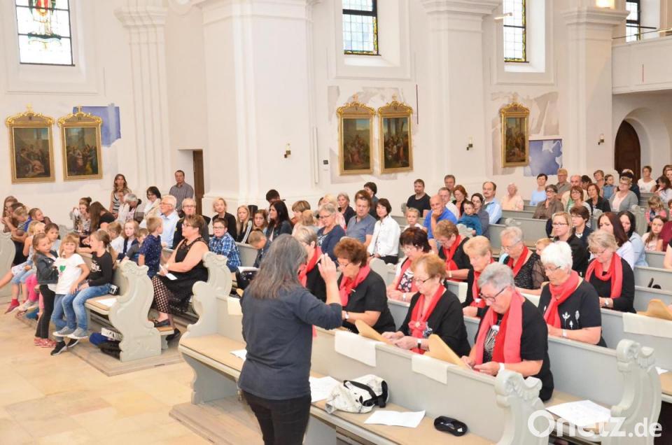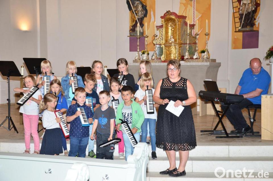 Als Solistin ließ sich Marie Knecht bei Mozarts „Ave Verum“ vom Band begleiten. Der zweite Melodikakurs bereicherte die Bandbreite durch die geistlichen Titel „Gott liebt die Kinder“ und „Lasst uns miteinander“. Fein und graziös gleichermaßen fiel das Zusammenspiel von Bucko (Klavier) und Magdalena Woppmann (Klarinette) aus. Auf die hörbaren Unterschiede beim erneut gewählten Werk „Ave Verum“ wies Kornelia Kraus hin, als der „Hornsatz“ mit Marina Schwarz auf der Empore erklang.
