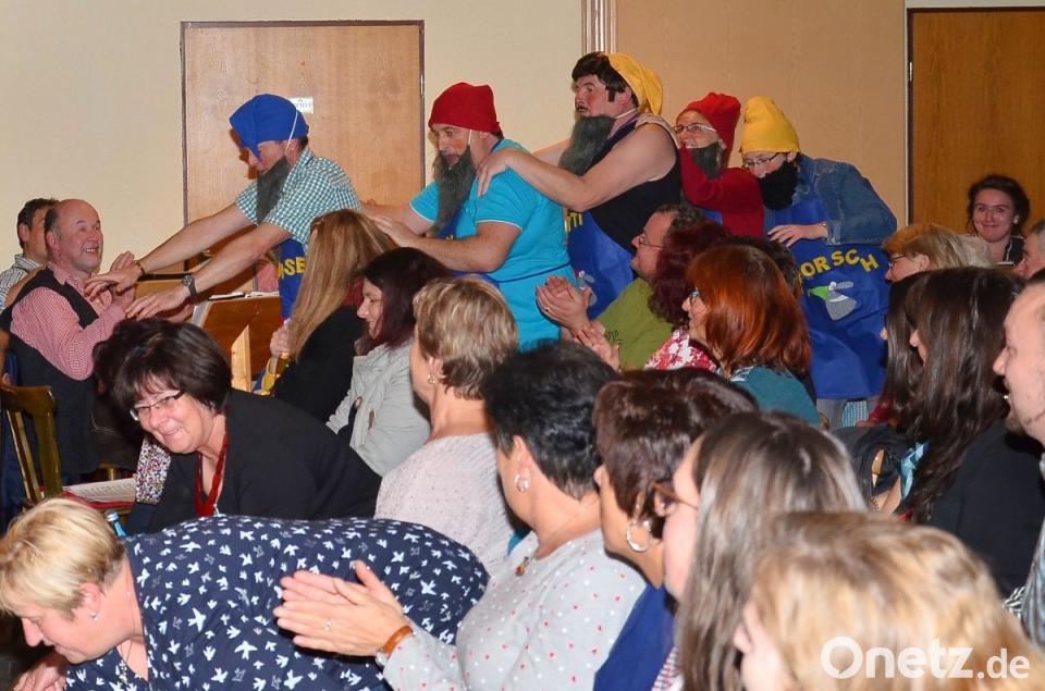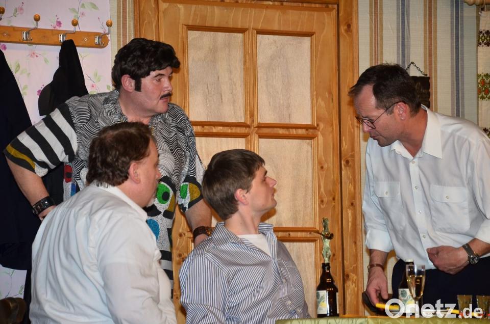 Genial formte Kleber als Regisseur seine Mitspieler aus „alten Hasen“ und neuen Gesichtern zu einem famosen Ganzen. Ellenhoch überragten die beiden weiblichen Neulinge zunächst vor allem optisch. Die Einbindung des jungen Nachwuchsduos Bianca Gilch und Anna Hierold erwies sich als genialer Streich. Josef Zitzmann besetzte die Doppelrolle als Postbote und prominenter Neureicher ausgezeichnet. Michaela Bösl mischte wieder einmal die gesamte Szenerie auf. Wer hier auch nur einen Deut dagegen sagte, hatte von vornherein verloren. In Christine Wellert fand sich die brillante Vertiefung ihrer Rolle, welche als Mitläuferin oder Verstärkende immer wieder für genügend Nachschub auf das lodernde Spaßfeuer sorgte. Jürgen Mensch blieb in der Rolle des Ehemanns nur die Flucht in eine andere Welt, wo er auf genügend Gleichgesinnte mit demselben Schicksal vertrauen durfte. So schaukelten sich die Ehekrisen der Paare immer höher und höher, wovon den Gästen nur die lustige Ausprägung vorgespielt ward. Weil die Spieler die gesamte Handlung zudem auf Waidhaus und Umgebung übertrugen, geriet der überaus vergnügliche Abend zu einem Stück faszinierender Heimatgeschichte. So mancher Besucher im Saal fand sich plötzlich durch passende Einbauten in den Dialogen der Akteure mitten im Geschehen. Beifall, Zurufe und fröhliche Minen bestätigten den Mitwirkenden am Ende die Qualität des Gebotenen. Angelika Gollwitzer, Martina Wettinger (beide Maske) und Brigitte Krämer (Suffleuse) machten da keine Ausnahme.