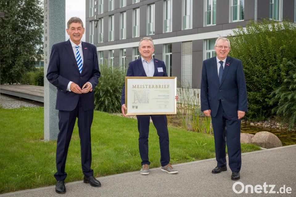 Gas- und Wasserinstallateurmeister und Betriebsinhaber von Heizung Schmucker in Waidhaus, Josef Schmucker, hat den Goldenen Meisterbrief und das Abzeichen „Goldenes M“ für 35 Jahre Treue zum Beruf und zum Handwerk erhalten. HWK-Präsident Georg Haber überreichte ihm die Urkunde bei der ersten Vollversammlung 2021 in Regensburg.