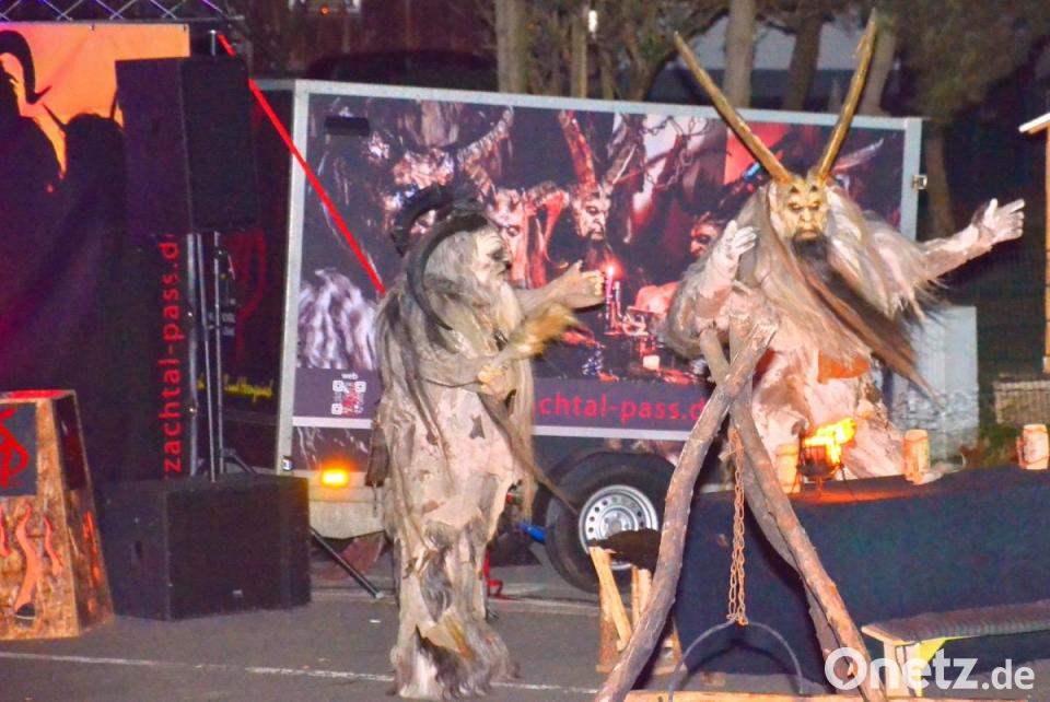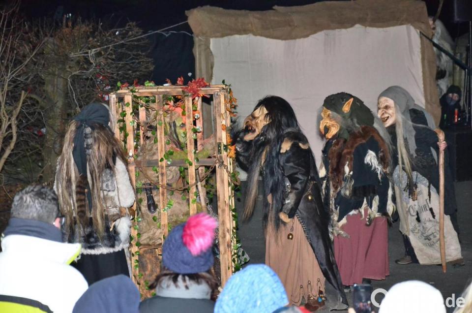 Basierend auf einer selbst zusammengezimmerten Kurzgeschichte präsentierten die „Krampusse vom Schwarzachtal-Pass“ aus der Gegend von Neunburg vorm Wald ein schauriges, gruseliges Schauspiel. Die ganze Show lebte von einer pompös umgesetzten Mischung aus Fantasie, Zauber und Sagen, welche sich eng an die Magie der für ganz Mitteleuropa überlieferten Rauhnächte anlehnte. Allein aufgrund der Lautstärke, die sich über die gesamte Ortsmitte des Marktfleckens legte, gab es kein Entrinnen mehr. Der mit aller Wucht ungeschützt eindringende Böhmische verstärkte die gespenstische Szenerie.