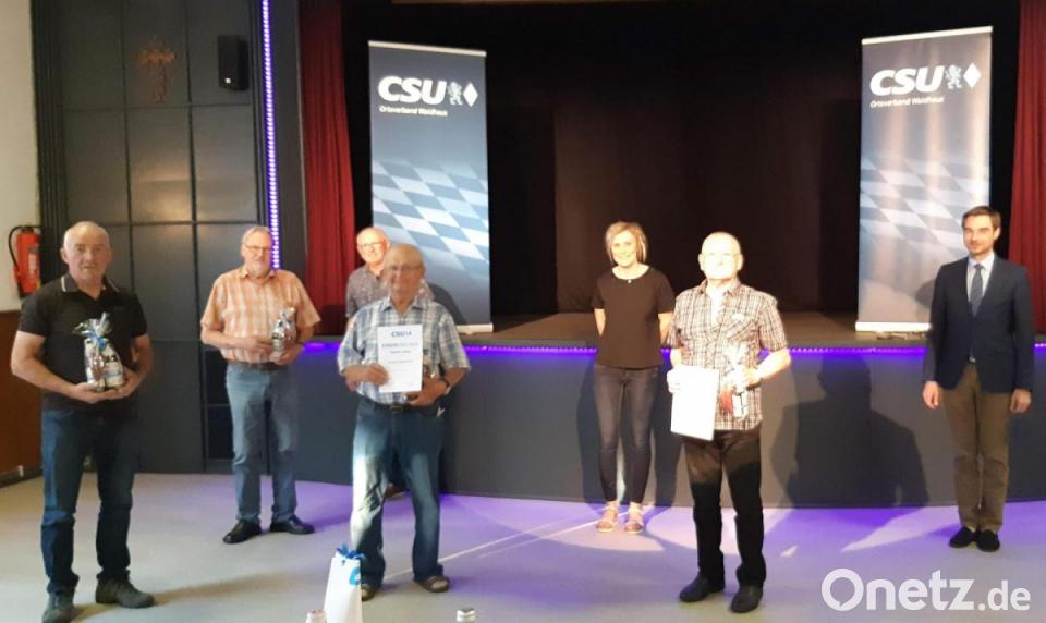 Bei einem Ehrenabend im neuen Kultursaal holte der CSU-Ortsverband nach, was in den vergangenen Monaten nicht stattfinden konnte. Zwei Honoratioren aus der Marktgemeinde galt dabei die ganze Aufmerksamkeit. Josef Neuber aus dem Weiler Ziegelmühle und Anton Brückner aus Hagendorf konnten beide zur stolzen Mitgliedszeit von 50 Jahren beglückwünscht werden. Auch Landtagsabgeordneter Stephan Oetzinger und Dritter Bürgermeister Ewald Zetzl fanden dafür anerkennende Dankesworte. Vorsitzende Nicole Troidl würdigte darüber hinaus die aktiven Jahre des Duos. Für ihre langjährige Tätigkeit im Ausschuss bekamen darüber hinaus Karl Sattler und Johann Lang ein Brotzeit-Präsent überreicht.