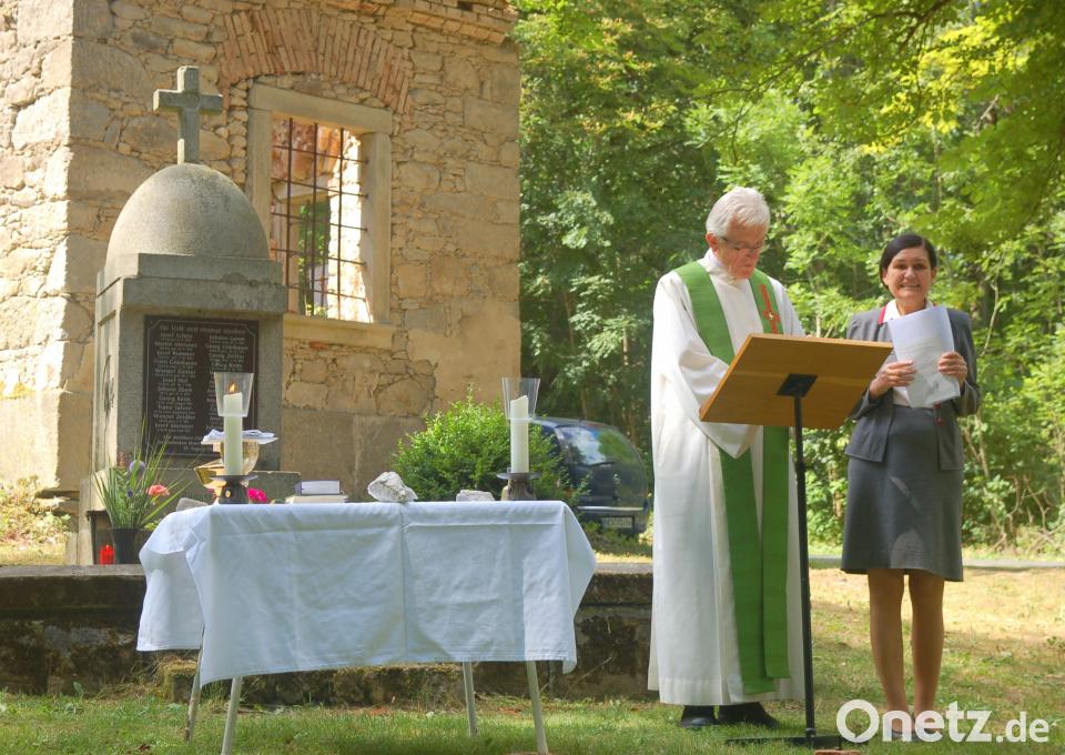Natürlich waren auch die aktuellen Friedhofspfleger, Kaas und Grötsch gekommen, sowie etliche der bisherigen Helfer bei den zwei Workcamps. Auch eine mehrköpfige Gruppe des Familiennamens „Schön“ mit Vorfahren aus der Gegend und der Waidhauser Kirchenpfleger Zeug nahmen teil.