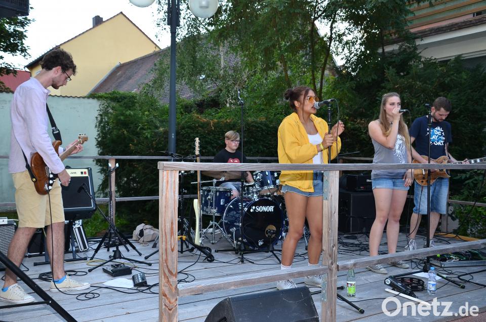 Auch die ausgezeichnete Stimmung tat dazu ihr übriges. Gerade die Eigenkompositionen gefielen nicht nur der Bürgermeisterin einfach "super". Daher stellte sie dem Publikum mit Paul Hüttl aus Leuchtenberg den Songschreiber und Kopf von "Random System" unter großem Beifall vor. Seine Titel "Lenses" und "June's Son" kamen im weiten Rund des Serenadenhofs ebenso gut an, wie bekannte Stücke, wozu etwa "No Roots" von Alice Merton zählte. Frisch hörten sich auch selbst arrangierte Rock-, Pop- und Alternative-Songs an, darunter Stücke von den Red Hot Chili Peppers, Ed Sheeran oder Oasis.