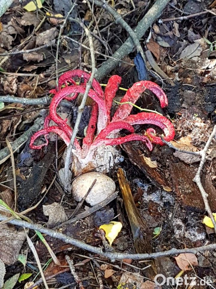 Als die beiden Sammler am Dienstag den besonderen Pilz genauer unter die Lupe nahmen, waren sie angetan von dessen Leuchtkraft und Schönheit. In all der Fachliteratur, die sie alljährlich mit in die Oberpfalz bringen, sei bei weitem kein so schönes Exemplar abgebildet. Erst seit etwa 100 Jahren sei diese Pilzform mit ihrer extravaganten Form in Deutschland vereinzelt zu finden. Es handle sich um eine in Südostasien und Australien beheimatet Art. Nur rund einen Tag lang stehe der Pilz „in voller Blüte“, dann verwese er wieder sehr schnell. Ein exorbitanter Geruch gehe mit diesem kurzen Leben stets einher.