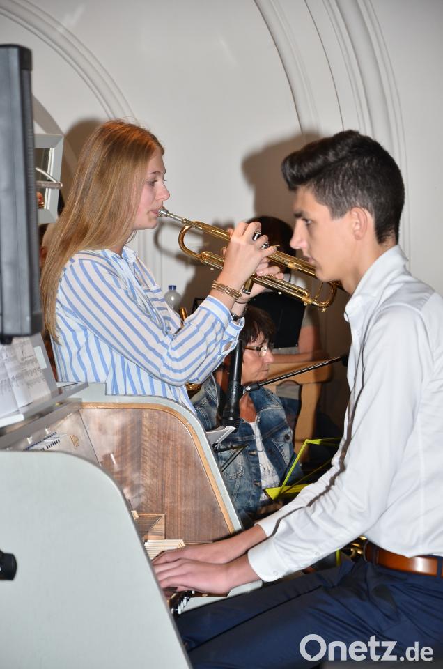 Mack zeigte sich „ganz hin und weg von der Resonanz“. Er bat darum, den Schülern ruhig Applaus zu spenden. Jeder einzelne Mitwirkende wurde dem Publikum mit seinem Vornamen vorgestellt. Aus Stadlern war Alexander gekommen, um auf seiner Trompete den Klassiker „Bis wir uns wiedersehen“ zu präsentieren. Der Klang in der Kirche kam dabei voll zur Geltung. Eng gedrängt zwischen der Orgel und den Kirchenbänken auf der Empore folgte die Bläsergruppe „Atemnot“ unter Leitung von Mack in riesiger Besetzung. Beim „Grandioso Giudita“ spielten nicht nur die Bürgermeisterin (Saxofon), sondern auch Pfarrer Hartl (Corno di caccia) im Ensemble mit, während Carola Ringholz die Soloklarinette blies.