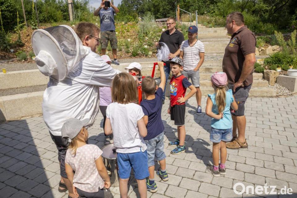 Vorsitzender Armin Bauer begrüßte die 25 anwesenden Kinder. Auch einige Eltern blieben mit da. Die Kinder wurden in drei Gruppen eingeteilt, und eine davon übernahm Bauer. Er erklärte die angrenzende Blühwiese als Nahrungsquelle der Bienen und die aufgebauten Schilder des Rundganges. Richard Riedl übernahm den zweiten Teil. Dazu erhielten die Kinder Schutzanzüge, mit denen es ins Bienenhaus ging. Dort erfuhren sie Wissenswertes über die Bienen, wie Waben zum Entdeckeln und Schleudern entnommen werden. Wer Lust hatte, durfte an der Kurbel bei der Schleuder drehen. Als Dritte im Bunde stellte Anja Thalhauser in den Dienst der guten Sache. Bei ihr formten die Kinder aus Erde, Katzenstreu, Bienenwiesesamen und Wasser Saatkugeln. Diese sollen nun als Mitgabe zu Hause trocknen und im Frühjahr ausgepflanzt werden. Im Laufe des Nachmittags wechselten die Gruppen durch. Dabei bewies das im Leaderprojekt entstandene Areal voll und ganz seine Qualitäten. Zum Schluss bekamen die Kinder leckere Honigsemmeln, die weitere Helfer aus Reihen des Vereins vor Ort frisch aufgestrichen hatten.