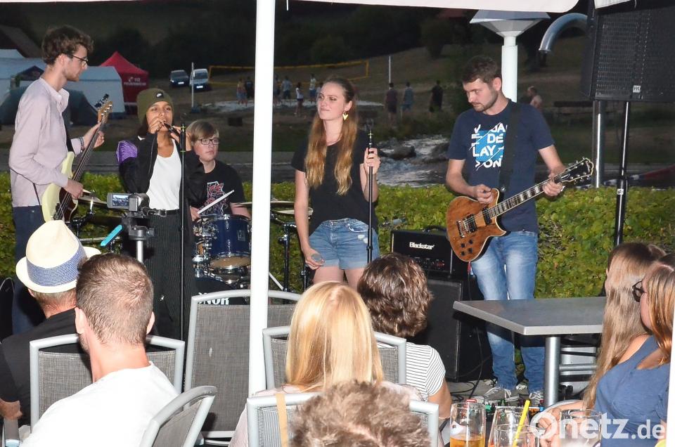 Mit viel Applaus und Begeisterung auf beiden Seiten ging am Samstagabend ein großartiges Konzert über die Bühne. „Just Tonight“ kam als Songtitel der Atmosphäre im Biergarten am Ufer des großen Naturbadesees in der Freizeitanlage „Bäckeröd“ sehr nahe. Unter freiem Himmel rockte sich das junge Quintett inmitten einer lauen Sommernacht mühelos in die Herzen des Publikums. Eltern und Verwandte der Bandmitglieder mischten sich mitten hinein unter die vielen Gäste. Bürgermeisterin Margit Kirzinger ließ sich das selbst organisierte Gastspiel bei freiem Eintritt ebenso wenig entgehen, wie Campinggäste und Zeltler.