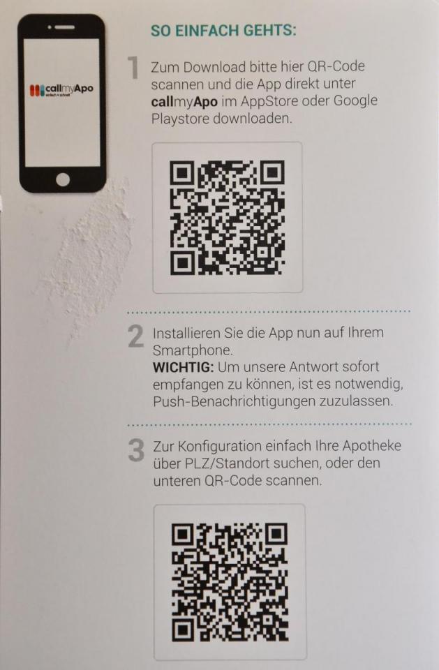 Egal, ob man sich für „callmyApo“ oder „deine Apotheke“ entscheidet: Beide Angebote sind kostenlos sowie schnell und leicht verständlich. Denn alle benötigen Funktionen werden mitgeliefert. Die QR-Codes vereinfachen die Nutzung und legen die Grundlage für besten Komfort.