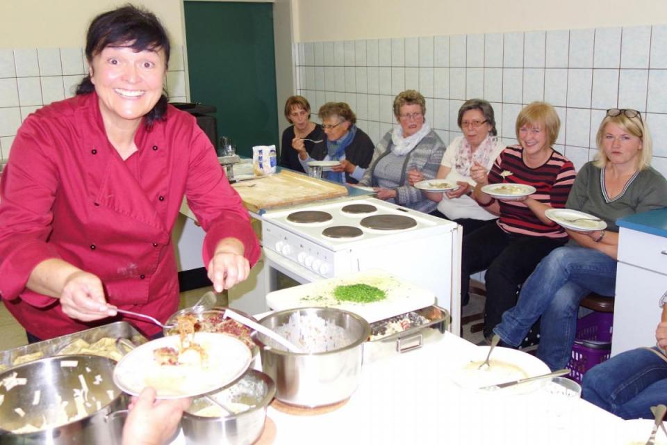 Am Freitagabend war die Schulküche voll mit Besuchern, denn das Interesse der ausschließlich weiblichen Teilnehmer am Kochabend war ungemein groß. Mit „Nudelvariationen auf Oberpfälzisch“ lässt sich der Kochabend der Siedlergemeinschaft wohl am ehesten beschreiben. Hauswirtschaftsmeisterin Monika Schnupfhagn aus Burgtreswitz gab den internationalen Nudelgerichten stets eine eigene Note mit regionalen Zutaten. Bis gegen Mitternacht widmeten sich Zuschauer und Vorkocherin einer bunten Bandbreite von Tagliatelle bis hin zu Maultauschen. Um die Anmeldungen und die Organisation hatten sich Renate Reichenberger und Ingrid Strehl gekümmert. Beiden war die Freude über die große Akzeptanz, weit über die Siedlergemeinschaft hinaus, förmlich ins Gesicht geschrieben.